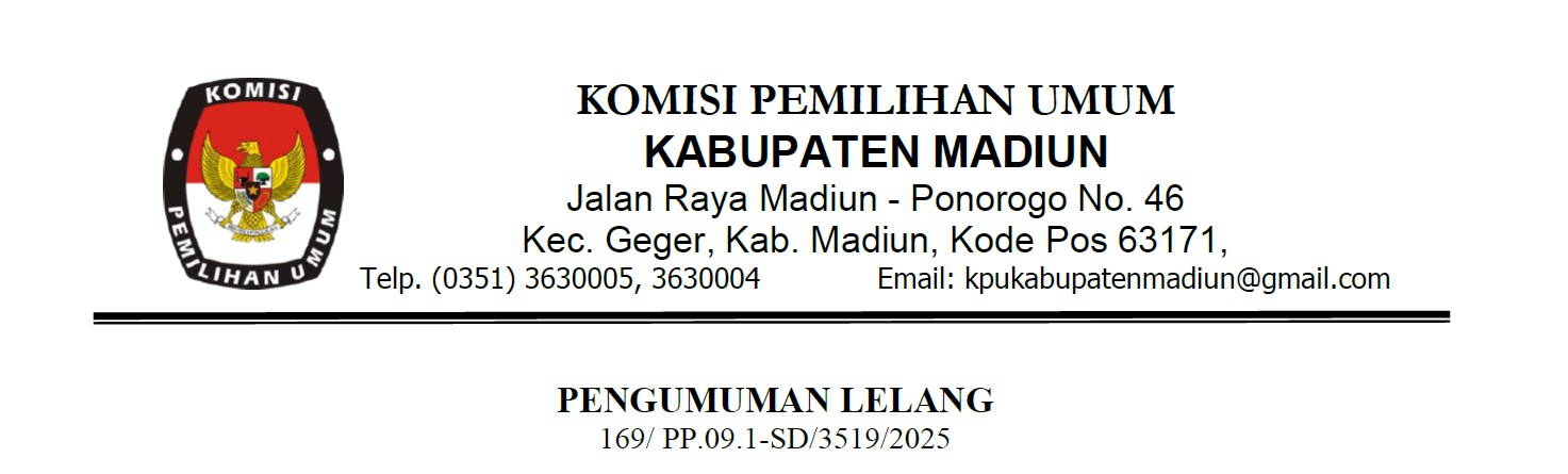 Komisi Pemilihan Umum (KPU) Kabupaten Madiun resmi mengumumkan pelaksanaan lelang penjualan surat suara Pemilihan Tahun 2024. Pengumuman lengkap bisa diunduh di sini.