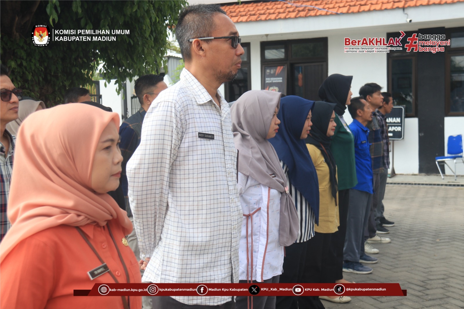 Apel diikuti oleh seluruh pejabat struktural, staf sekretariat, serta tenaga pendukung KPU Kabupaten Madiun. Kegiatan berlangsung khidmat dan ditutup dengan doa bersama.