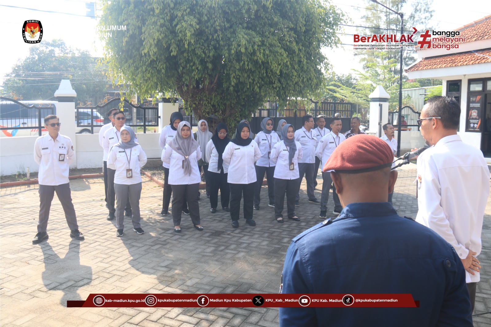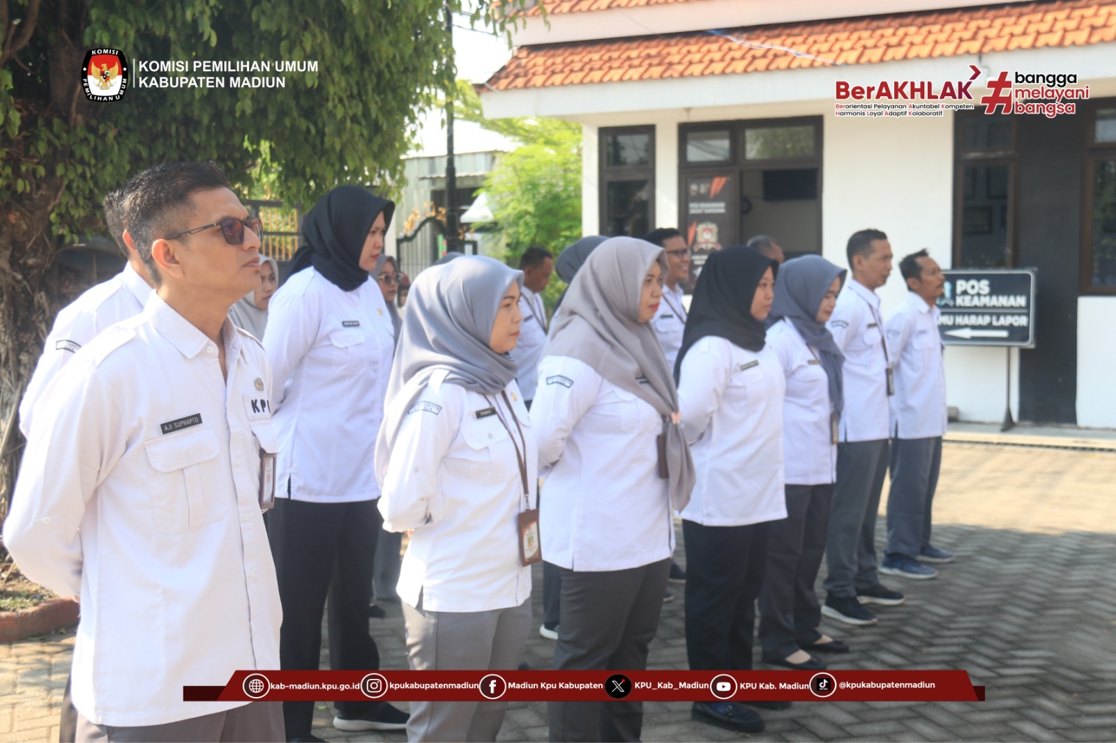 Apel rutin ini diikuti oleh seluruh staf sekretariat KPU Kabupaten Madiun. Seperti biasa, kegiatan tersebut menjadi wadah untuk memperkuat kedisiplinan dan koordinasi kerja di lingkungan internal KPU.