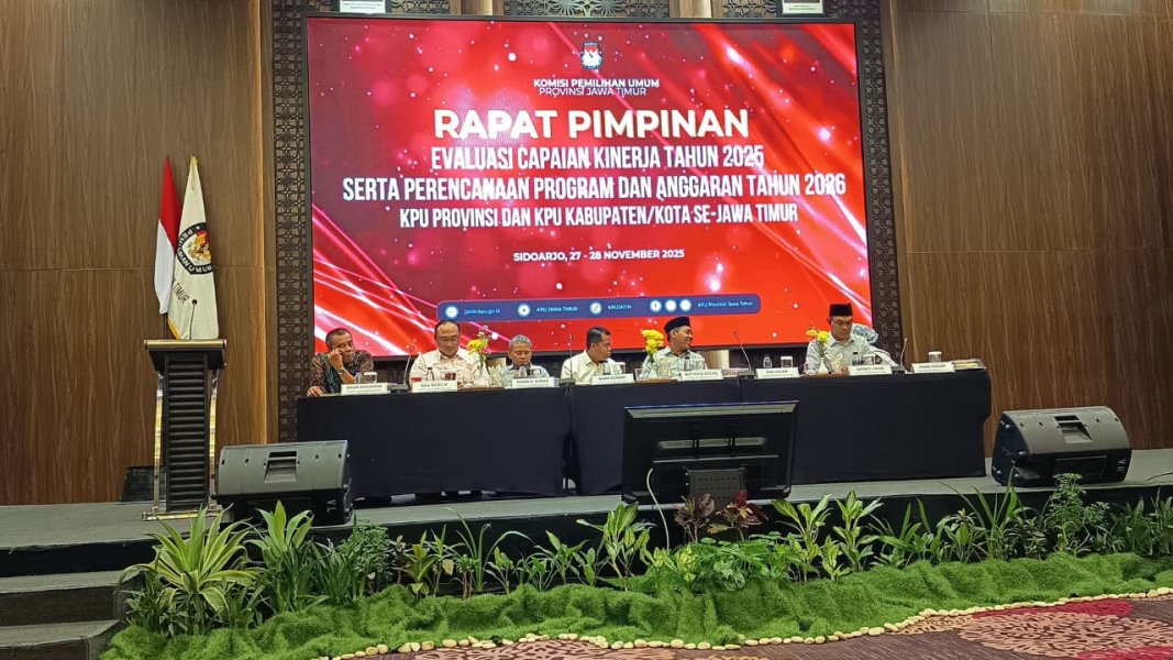 Madiun - Komisi Pemilihan Umum (KPU) Kabupaten Madiun turut serta dalam Rapat Pimpinan (Rapim) yang digelar oleh KPU Provinsi Jawa Timur, dengan fokus utama pada evaluasi capaian kinerja tahun 2025. Kegiatan strategis ini berlangsung intensif selama dua hari, Kamis hingga Jumat (27–28 November 2025), di Kantor KPU Kabupaten Sidoarjo.