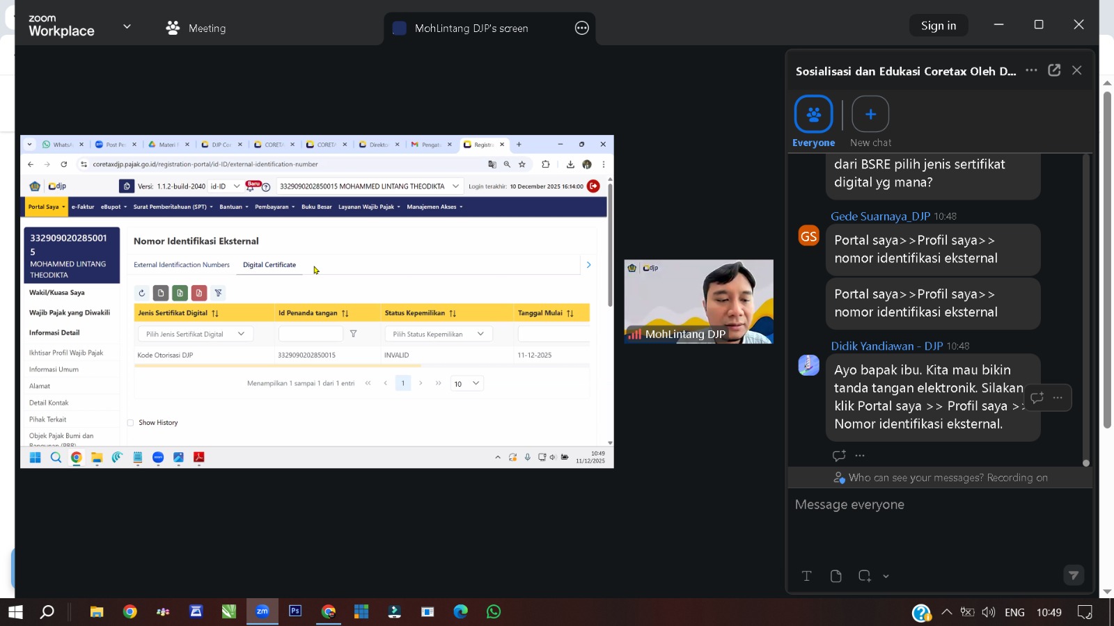 Seluruh jajaran kesekretariatan KPU Kabupaten Madiun mengikuti kegiatan tersebut dari aula kantor melalui Zoom. Peserta menerima penjelasan teknis terkait aktivasi akun Coretax, penggunaan sertifikat elektronik, serta alur terbaru penyampaian SPT Tahunan ASN.