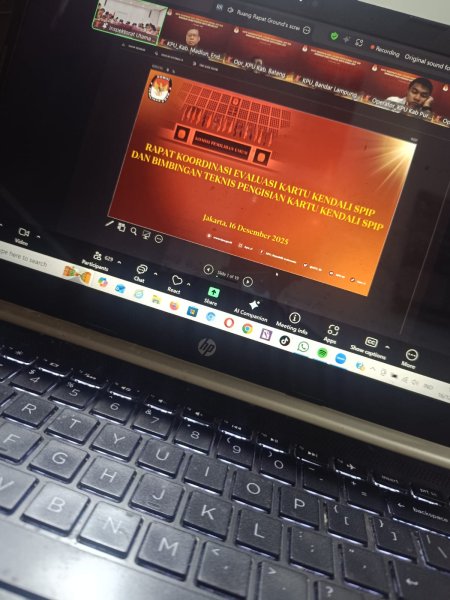 Madiun – Komisi Pemilihan Umum (KPU) Kabupaten Madiun mengikuti Bimbingan Teknis (Bimtek) Pengisian Kartu Kendali Sistem Pengendalian Intern Pemerintah (SPIP) yang diselenggarakan oleh KPU Republik Indonesia pada Selasa (16/12/2025). Kegiatan tersebut dilaksanakan secara daring melalui Zoom Meeting.