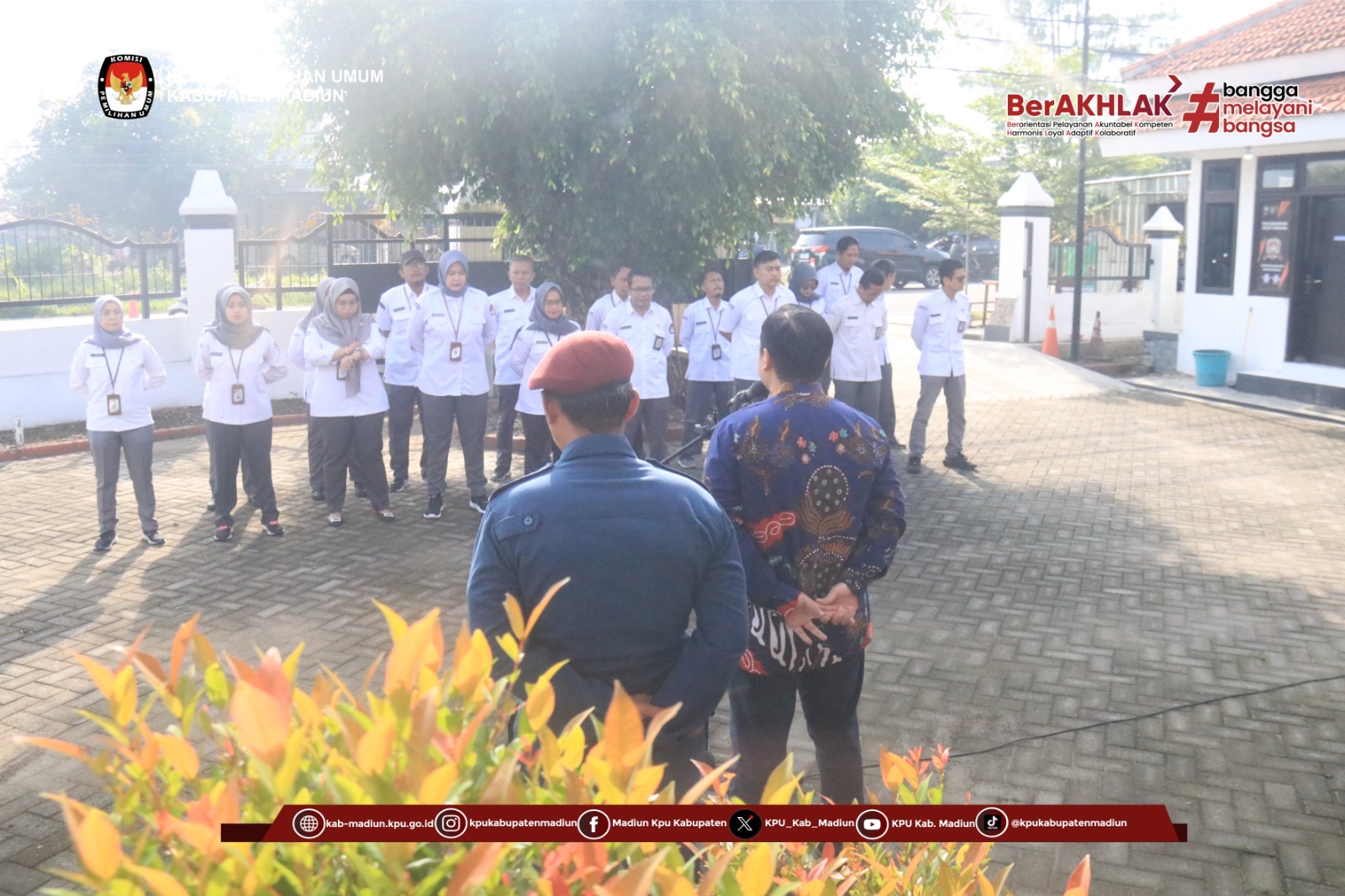 Madiun — Komisi Pemilihan Umum (KPU) Kabupaten Madiun melaksanakan apel pagi rutin pada Senin, 19 Januari 2026, di halaman Kantor KPU Kabupaten Madiun. Apel yang dimulai pukul 08.00 WIB ini diikuti oleh Ketua dan Anggota KPU Kabupaten Madiun, Sekretaris, serta seluruh staf sekretariat.