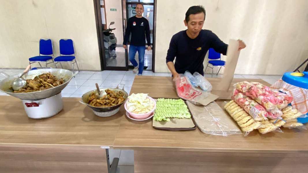 Sejak pagi, para pegawai bergotong royong menyiapkan hidangan utama berupa rica-rica mentok dan ayam kampung. Proses memasak dilakukan bersama dengan penuh antusias, mencerminkan kekompakan dan kebersamaan antarpersonel.