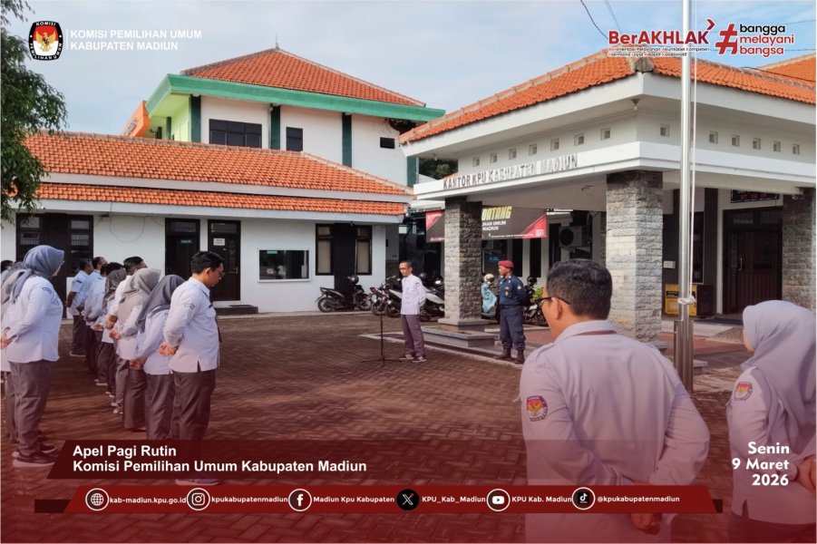 Apel dipimpin Sekretaris KPU Kabupaten Madiun, Agung Dwi Murdianto. Dalam arahannya, ia menyampaikan rencana kunjungan Biro Logistik KPU RI yang dijadwalkan berlangsung pada Selasa (10/3/2026).