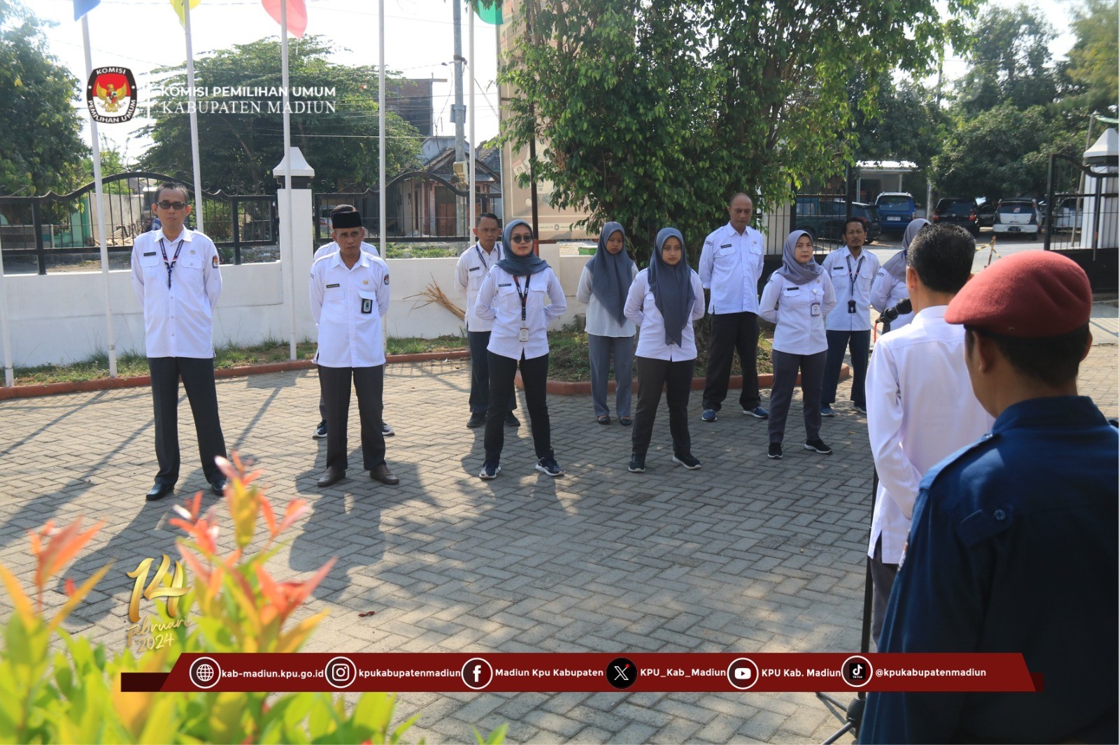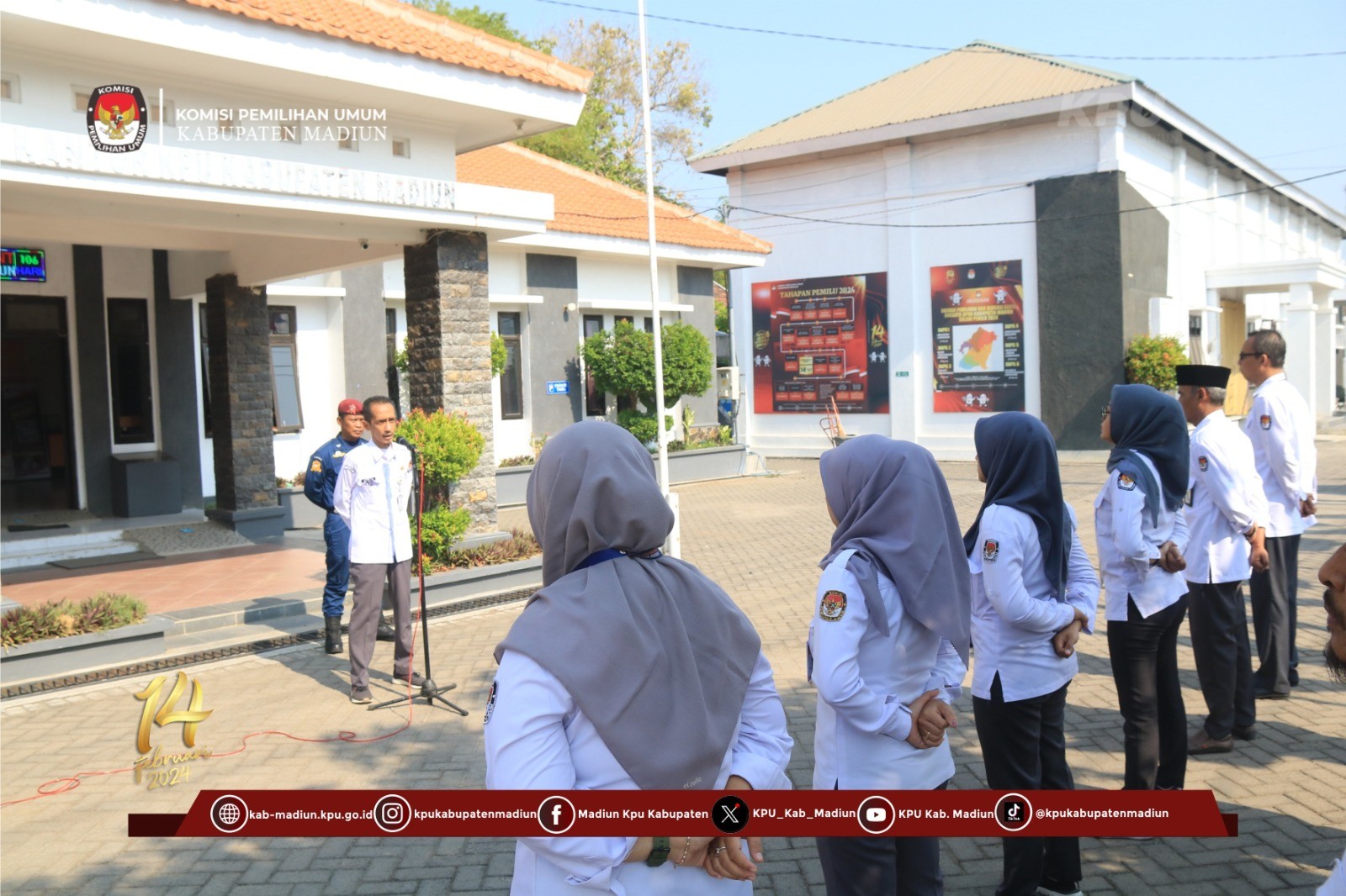 Dalam Amanatnya Agung Dwi Murdianto menyampaikan kepada seluruh personel KPU Kabupaten Madiun bahwasannya tahapan logistik pemilu dalam akhir pekan ini sudah mulai berdatangan, diharapkan untuk kesiapannya seluruh personel untuk siap sedia menjalankan kegiatan ini. Agung juga mengingatkan untuk selalu menjaga kekompakan dalam Tim untuk pelaksaan Ploting Logistik dijalankan dengan lancar.