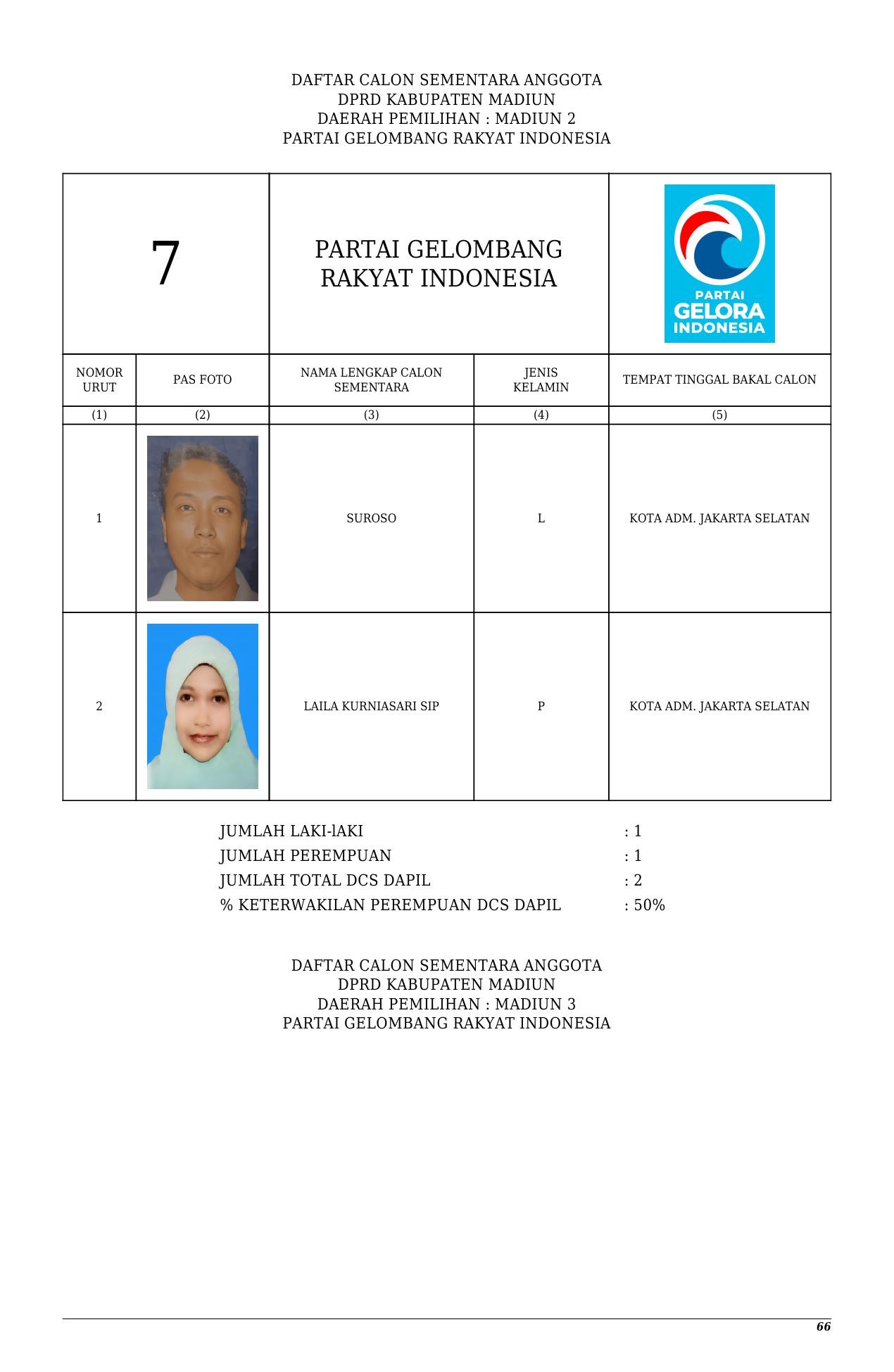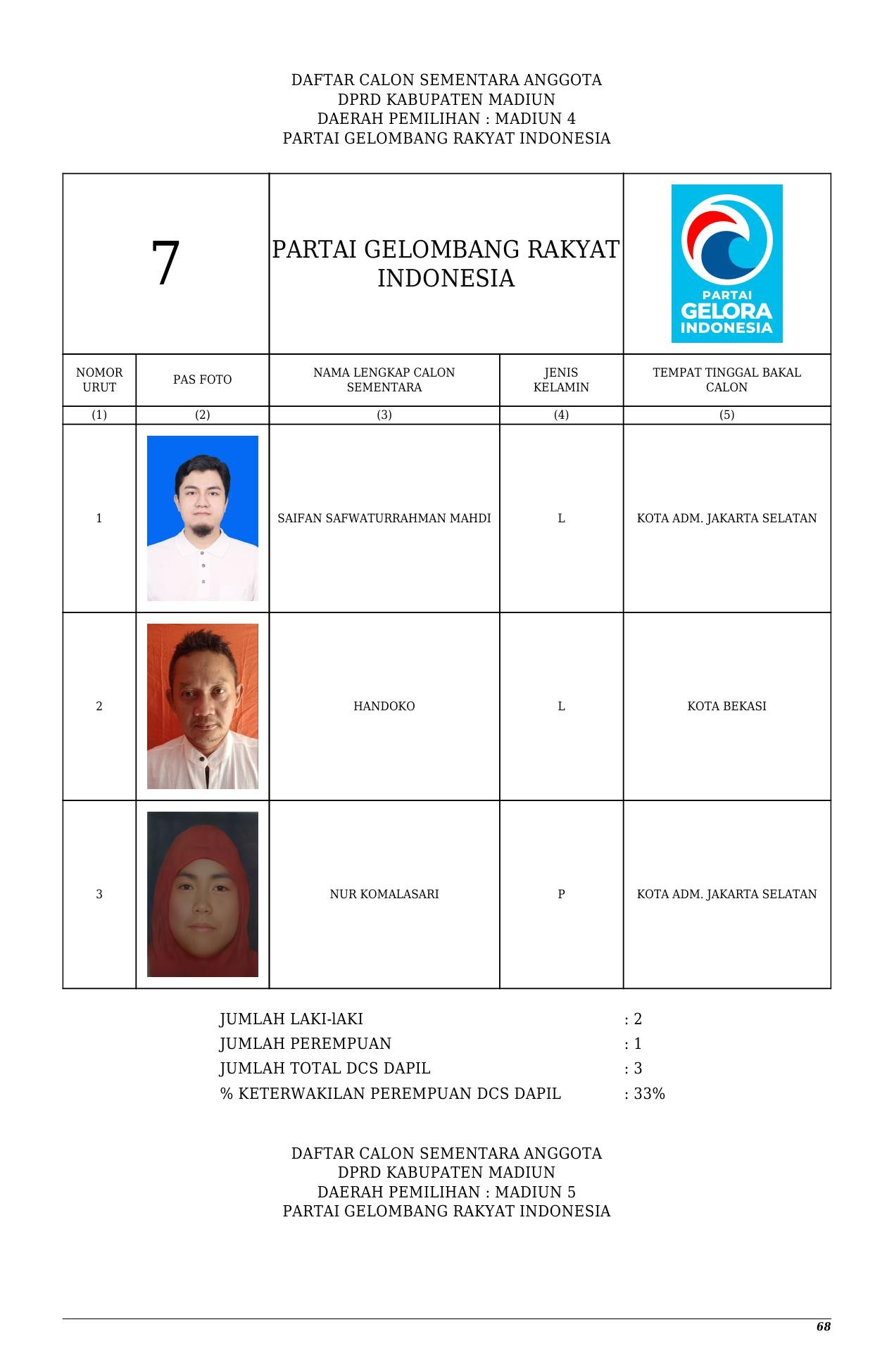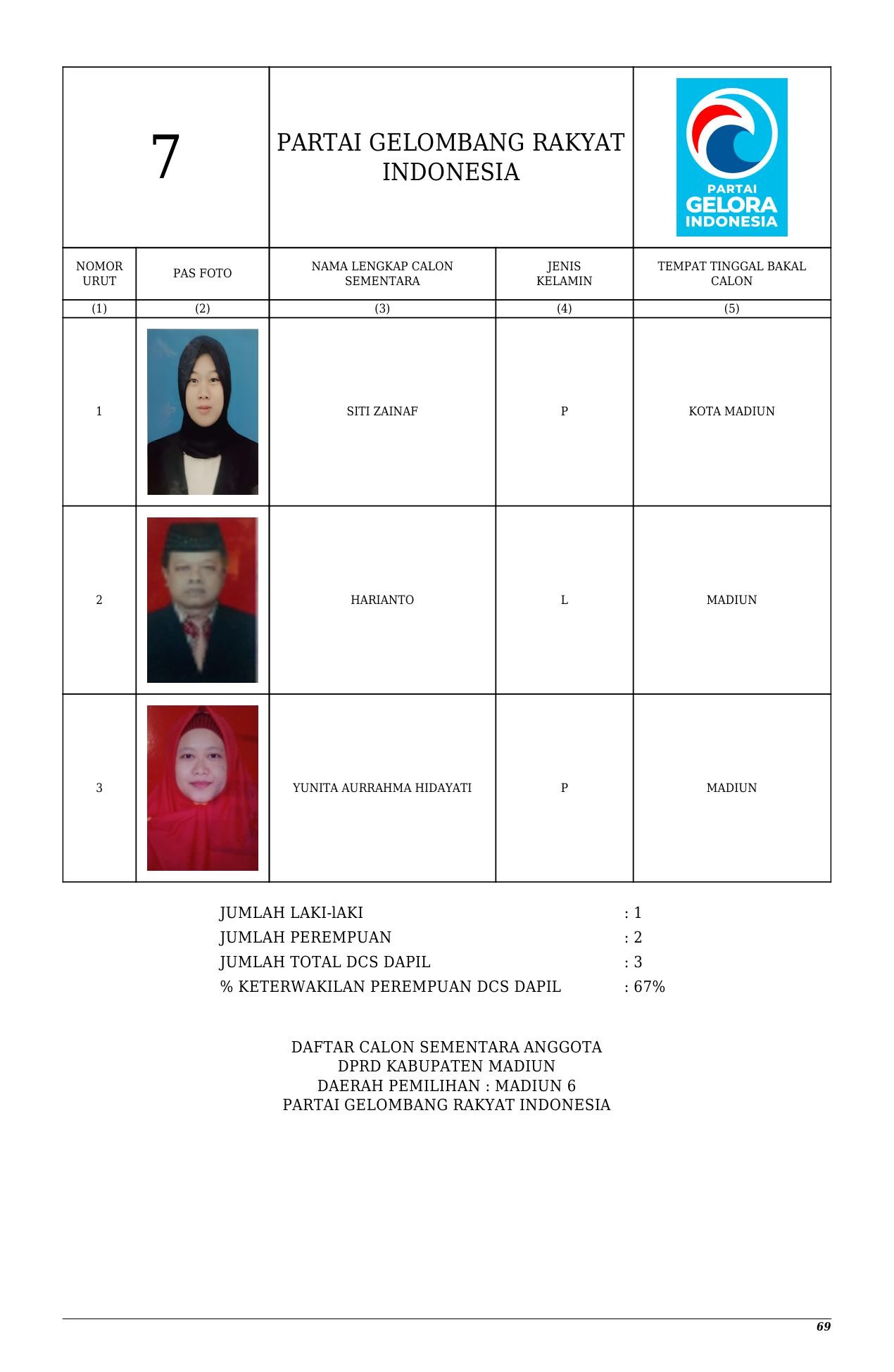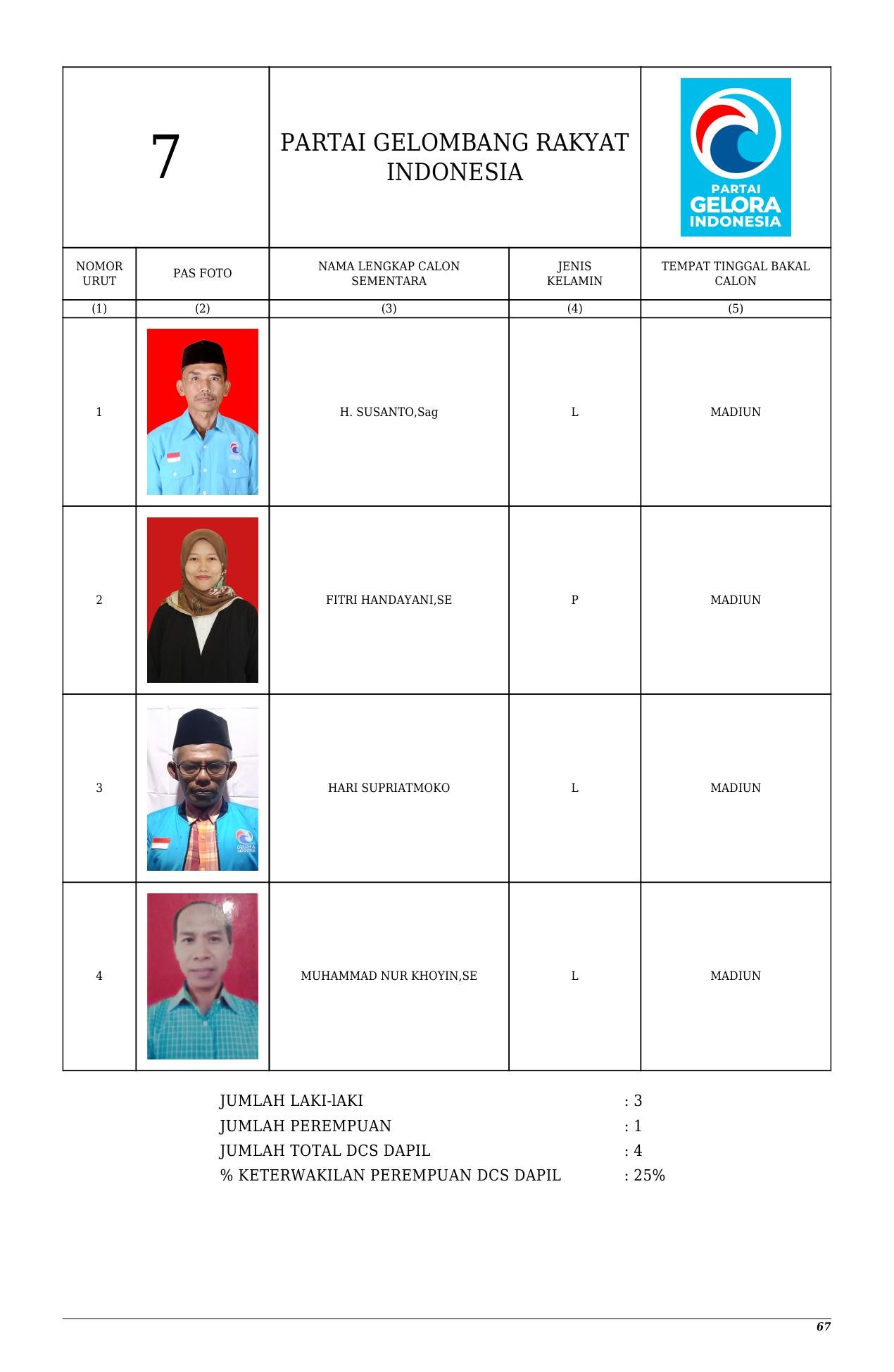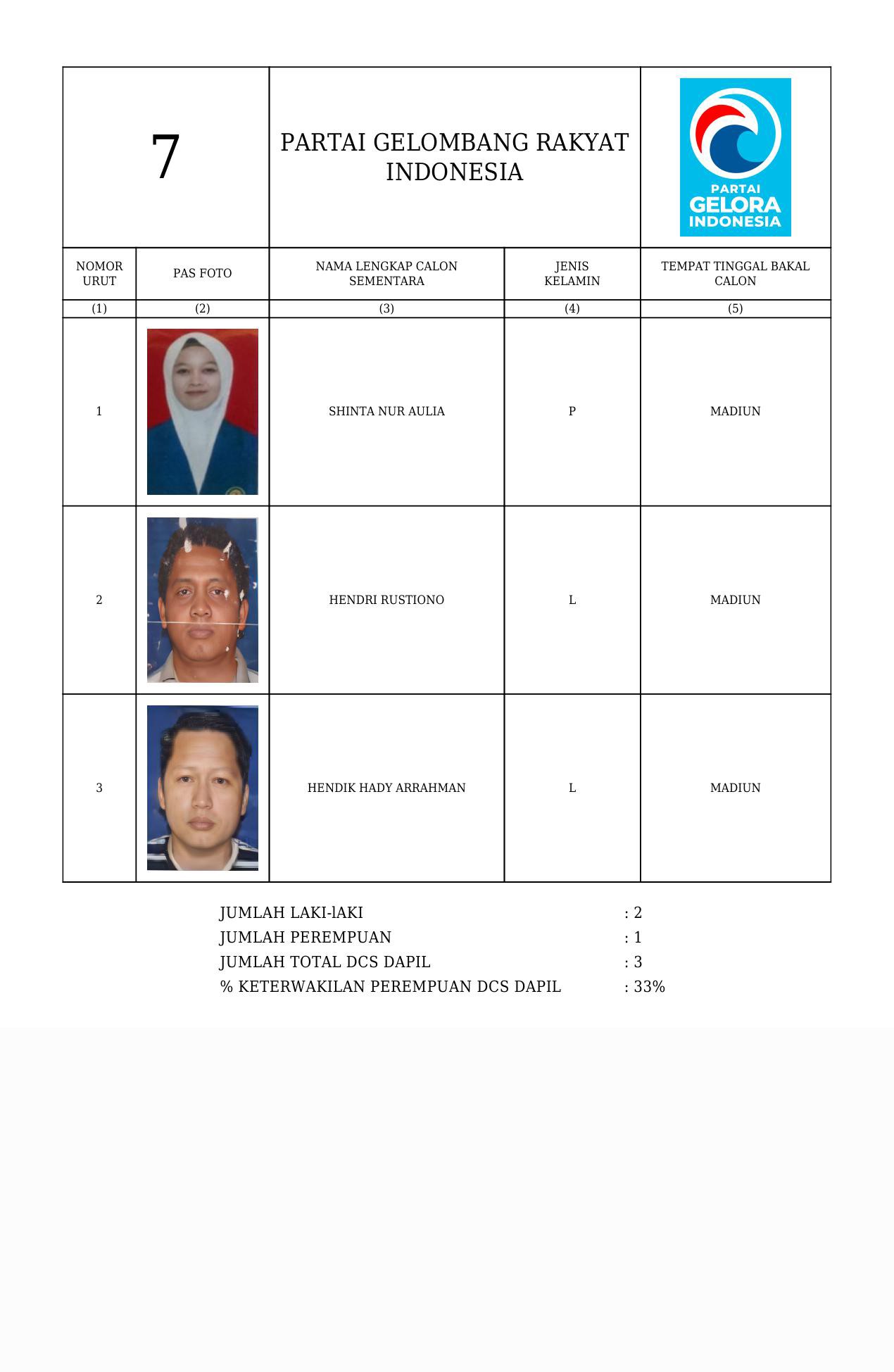 Daftar Calon Sementara Partai Gelora