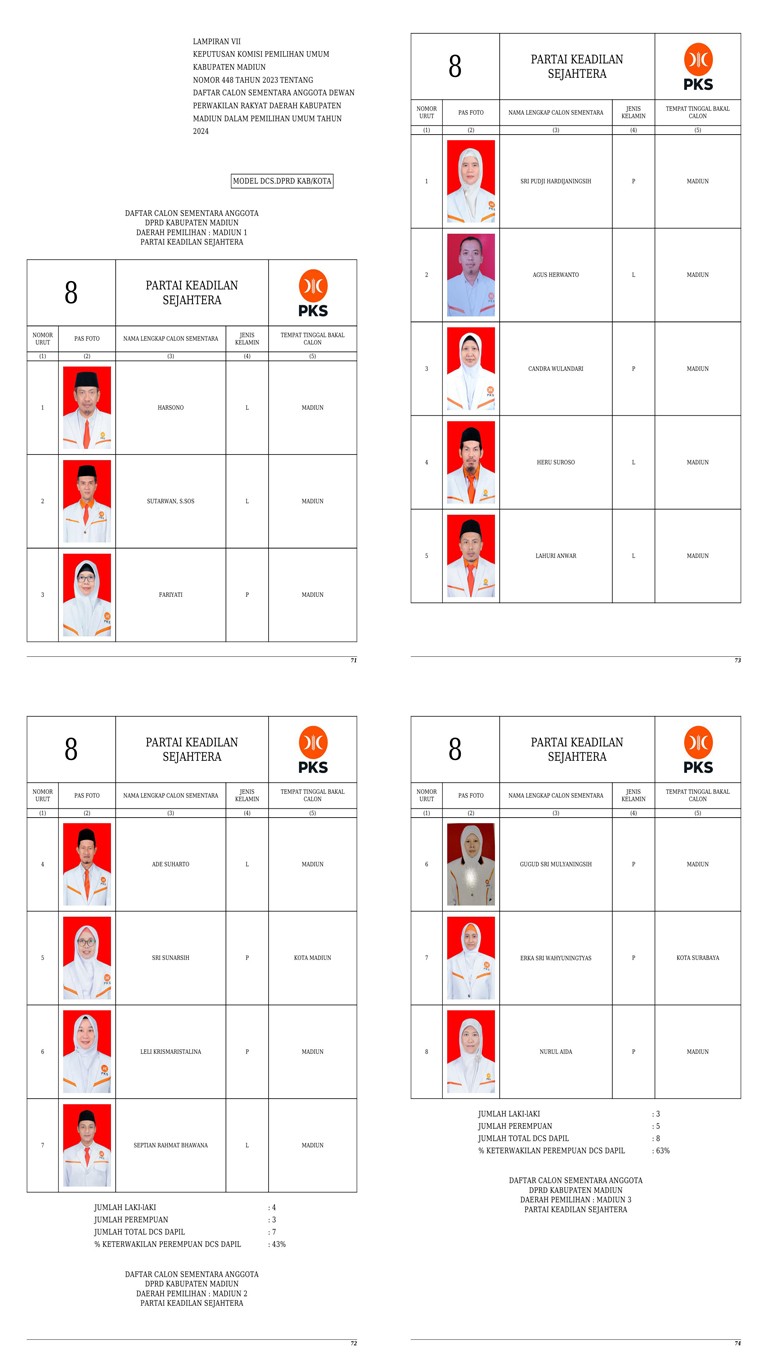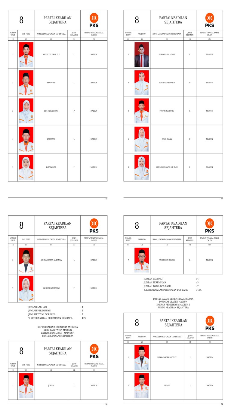 Daftar Calon Sementara Partai Keadilan Sejahtera