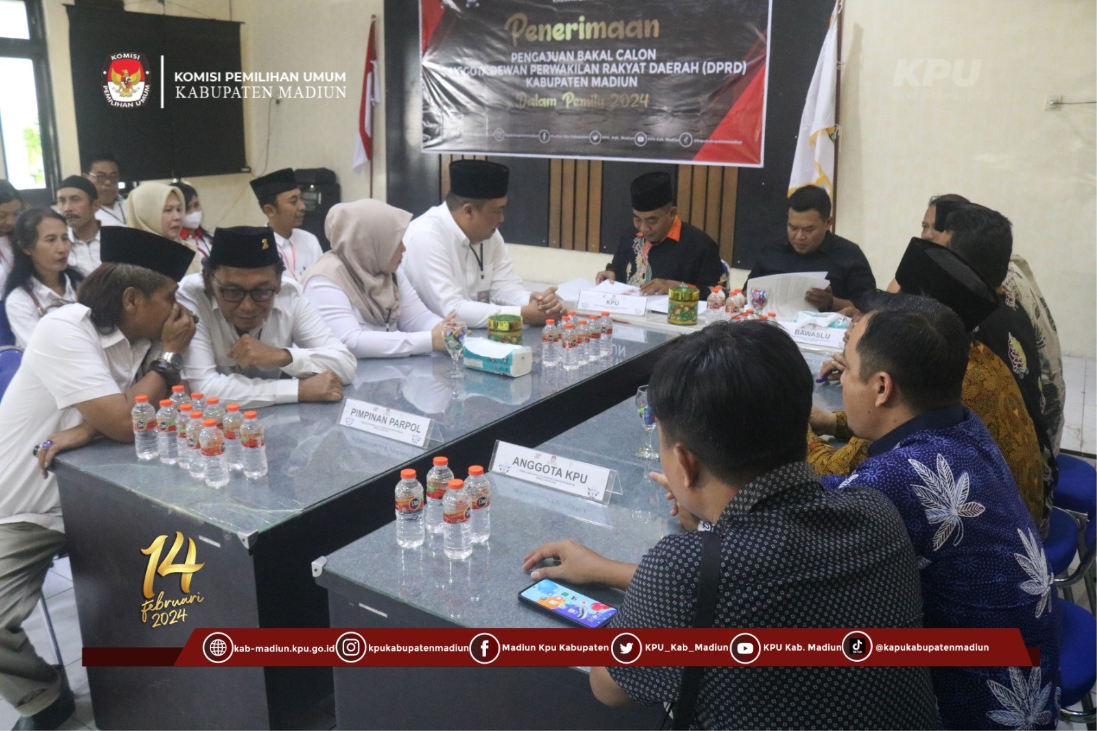 Kedatangan DPC Partai Gerakan Indonesia Raya (GERINDRA) ditemui langsung oleh Ketua KPU Kabupaten Madiun Ali Nur Wahyudi dengan seluruh Anggota Komisioner ( Jumangin, Tri Haryono, Nur Wachid Nasrulloh, Fahim Amrillah). Dilakukan pengecekan data pada aplikasi SILON oleh operator berikut dilanjutkan dengan penyerahan BA ke DPC Partai Gerakan Indonesia Raya (GERINDRA) sebagai tanda terima sudah mengajukan Bakal Calon DPRDnya ke KPU Kabupaten Madiun. Seluruh alur kegiatan pendaftaran ini juga didampingi dengan Bawaslu Kabupaten Madiun.