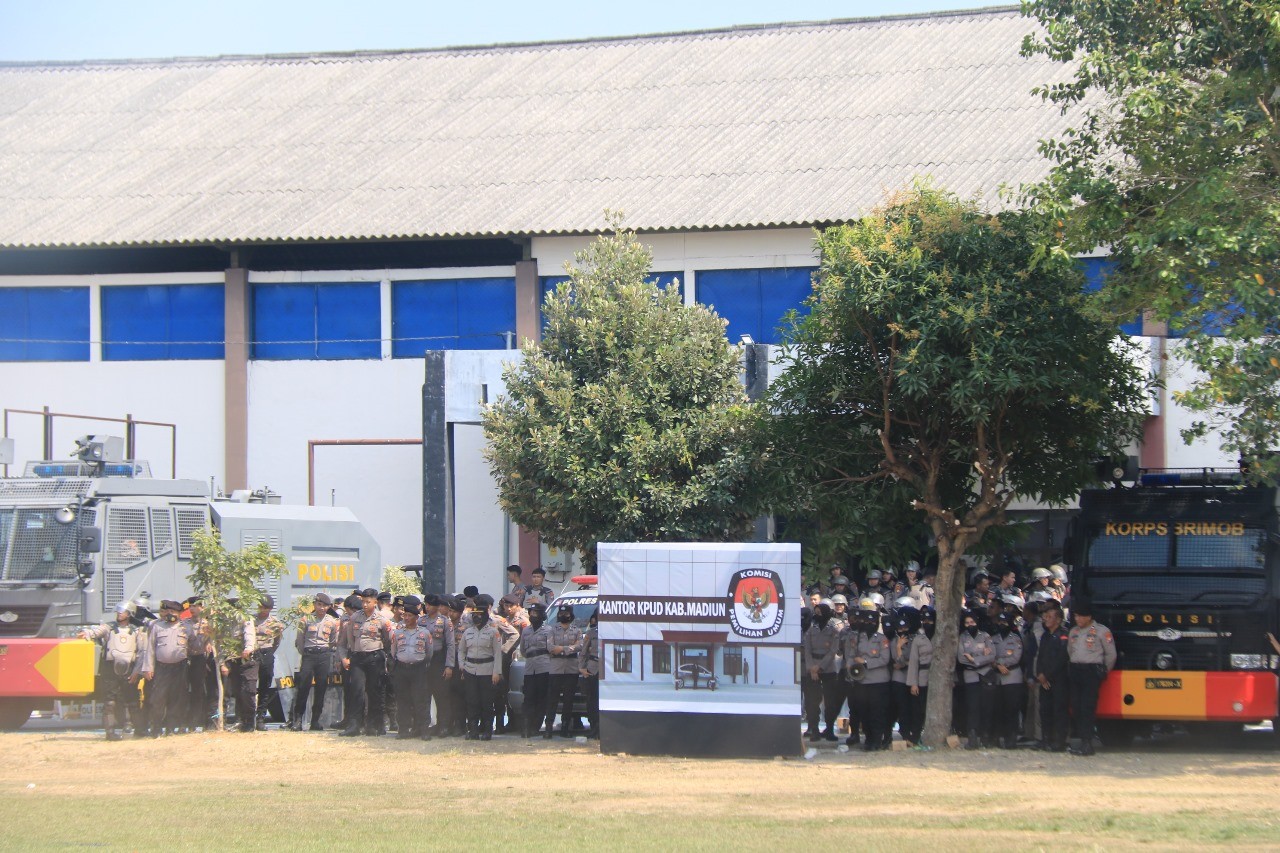 Madiun, http://kab-madiun.kpu.go.id Polres Kabupaten Madiun selama 2 hari kedepan pada tanggal 30-31 Agustus 2023 mengadakan kegiatan Pelatihan Sispamkota dalam rangka Pengamanan Pemilu 2024. Turut menghadiri undangan tersebut yakni Ketua KPU Kabupaten Madiun Ali Nur Wahyudi dan Komisioner Divisi Sosdiklih Parmas Fahim Amrillah yang didampingi oleh 5 Staf ASN dan Pendukung dalam pelaksanaan Sispamkota. Kegiatan yang berlangsung mulai dari hari Rabu – Kamis dilaksanakan di lapangan Tri Brata Polres Kabupaten Madiun.