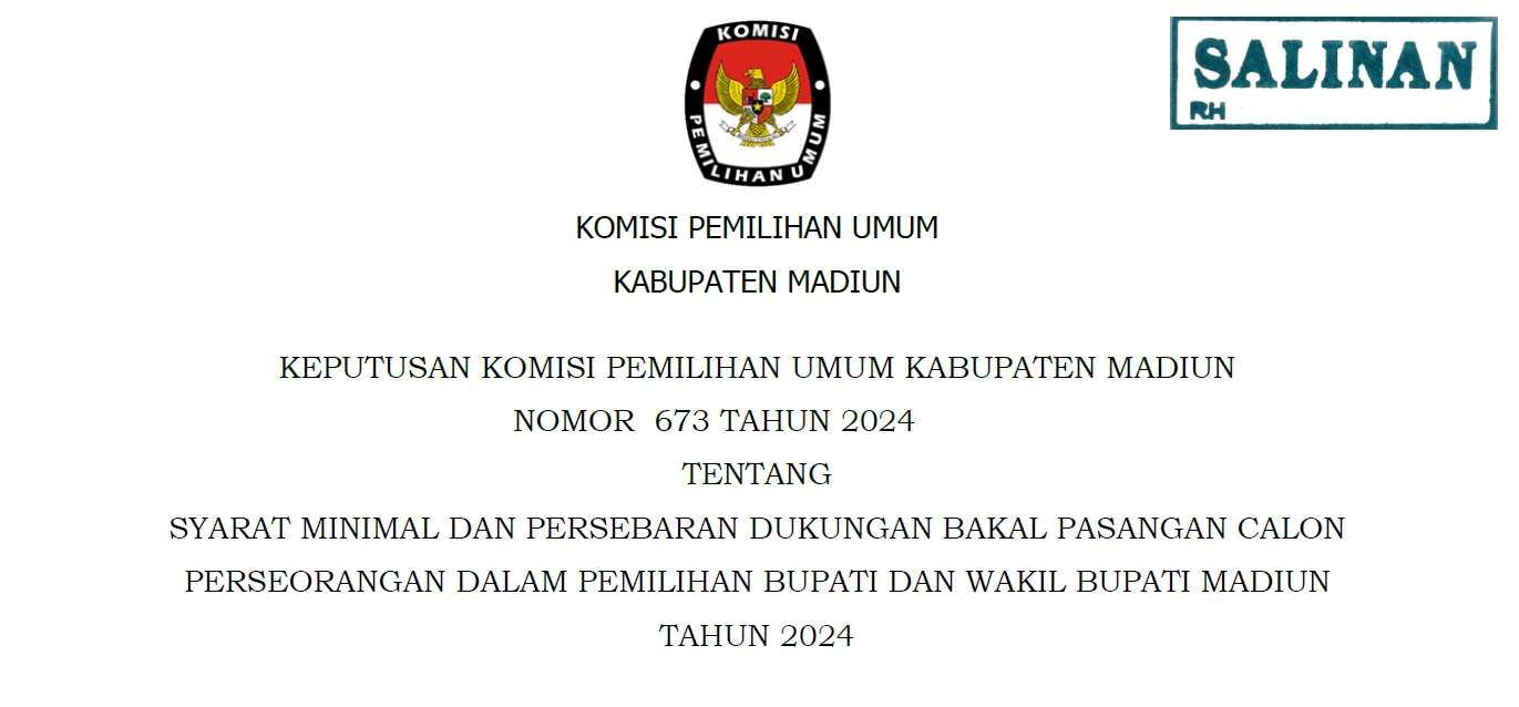 Keputusan KPU Kabupaten Madiun Nomor 673 Tahun 2024