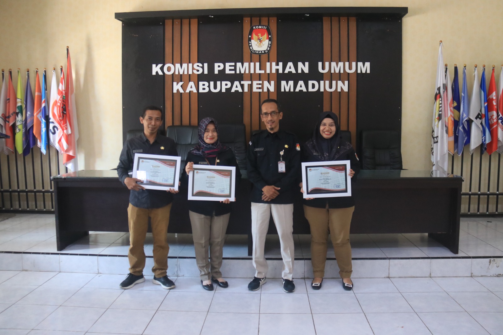 Dalam kesempatan tersebut, tiga pegawai KPU Kabupaten Madiun menerima penghargaan sebagai bentuk pengakuan atas prestasi kerja mereka. Ketiga Pegawai tersebut diantaranya, Tamin Hariyanto dianugerahi sebagai Kasubag Terbaik, selanjutnya Indah Purwati terpilih sebagai Staf Terbaik, serta Ratih Tyas Erawati meraih penghargaan sebagai Staf P3K Terbaik. Masing-masing penerima penghargaan mendapatkan piagam penghargaan secara simbolis oleh Sekretaris KPU Kabupaten Madiun, Agung Dwi Murdianto.