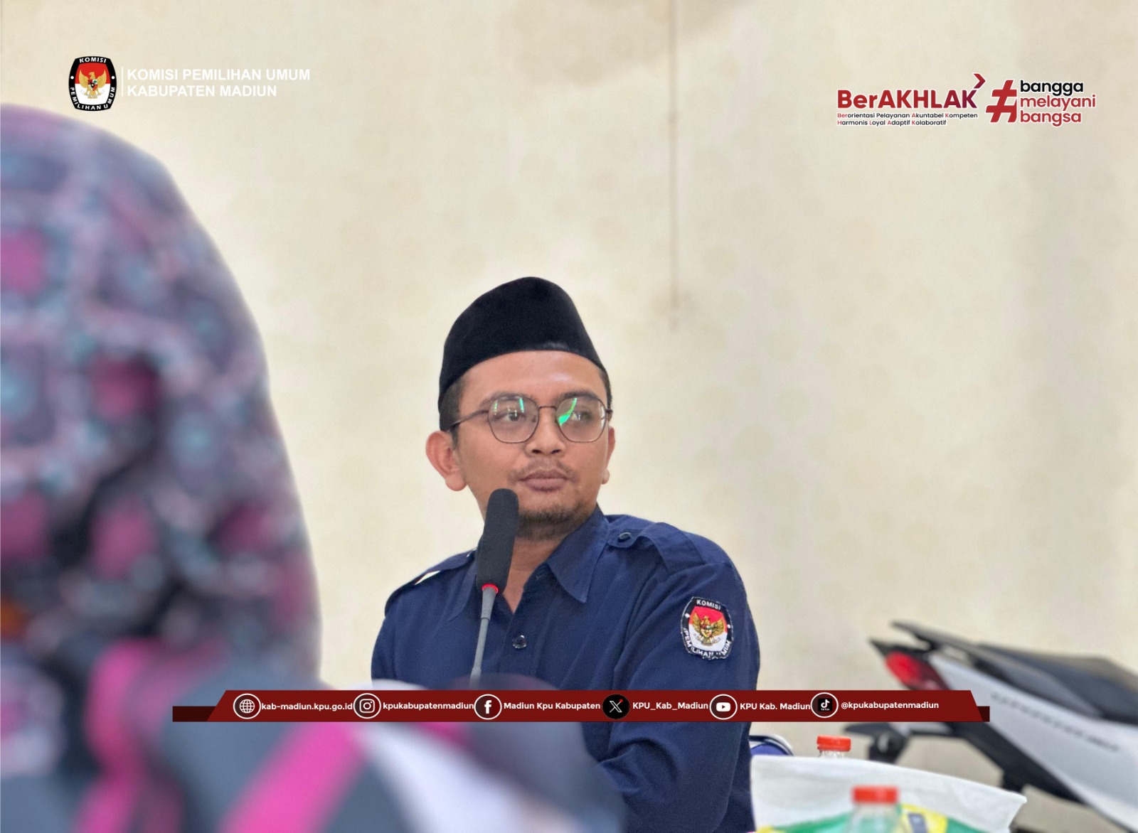 Madiun – Komisi Pemilihan Umum (KPU) Kabupaten Madiun menggelar rapat evaluasi capaian kinerja Triwulan II Tahun 2025 pada Kamis (24/7), bertempat di Aula Kantor KPU Kabupaten Madiun. Rapat ini dihadiri oleh komisioner KPU Kabupaten Madiun, staf sekretariat, serta mahasiswa magang yang saat ini sedang melaksanakan kegiatan praktik kerja lapangan di KPU.