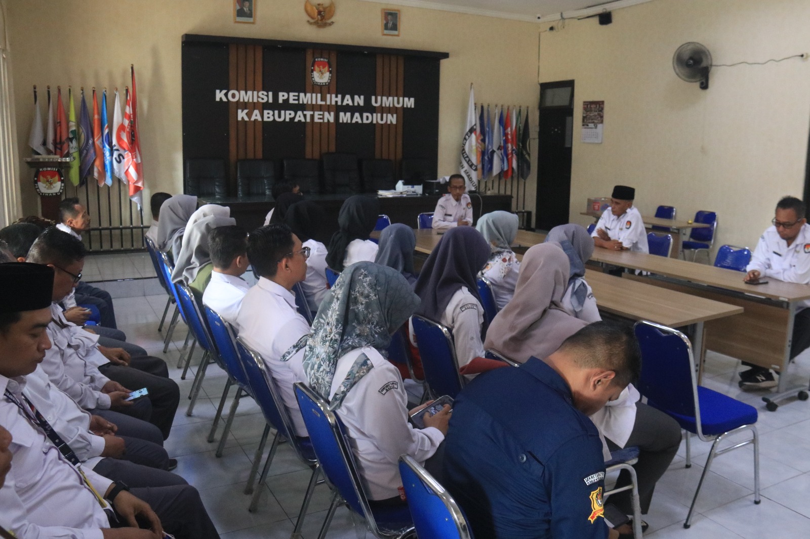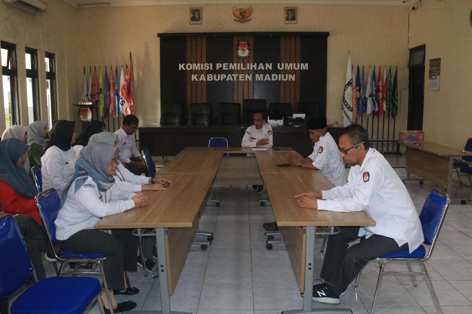 Madiun – Komisi Pemilihan Umum (KPU) Kabupaten Madiun kembali menggelar rapat rutin setiap Senin pagi setelah usai melaksanakan apel di halaman kantor KPU, Senin (04/08/2025). Rapat yang dipimpin oleh Sekretaris KPU Kabupaten Madiun, Agung Dwi Murdianto, dilaksanakan di Aula Kantor KPU Kabupaten Madiun dan diikuti oleh seluruh, kasubag, dan staf sekretariat.