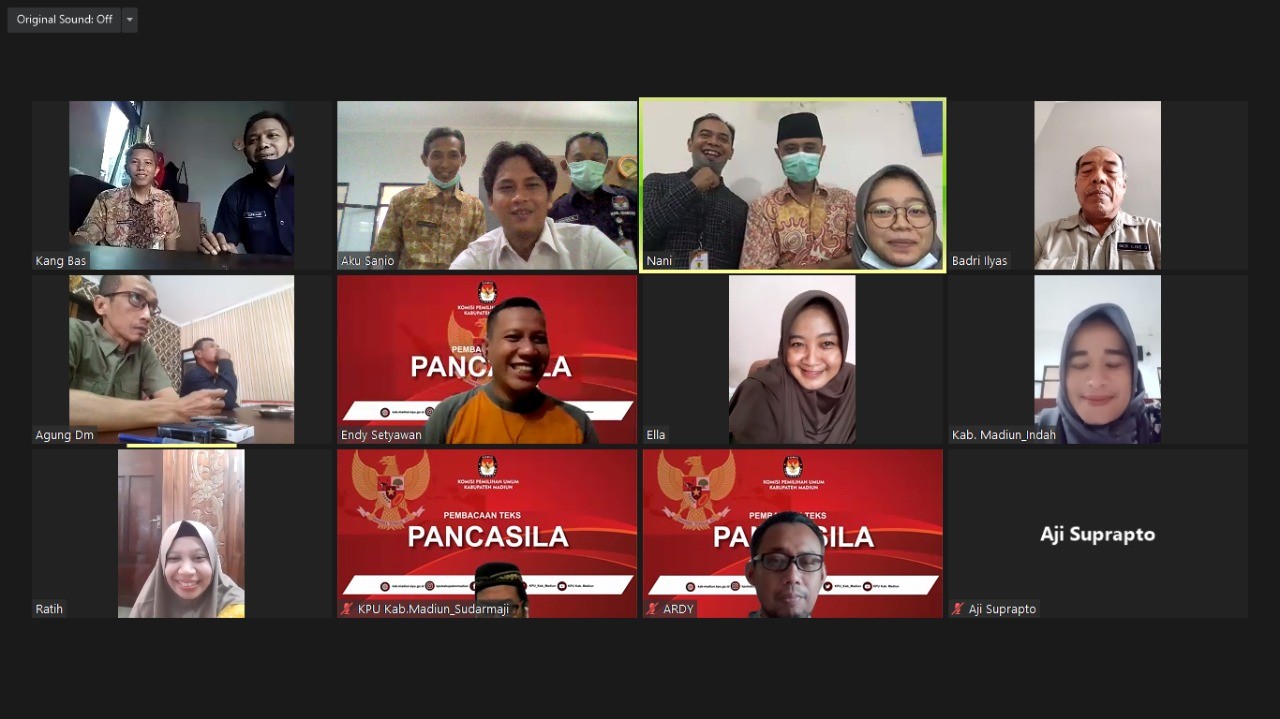 Madiun, http://kab-madiun.kpu.go.id Kali ini rutinitas membacakan Teks Pancasila dilaksanakan KPU Kabupaten Madiun mulai pukul 09.30 WIB via daring. Dipimpin oleh Kasubbag Teknis Hubmas Retno Meylia Muslim dalam Kegiatan ini dihadiri oleh Seluruh personel KPU Kabupaten Madiun.