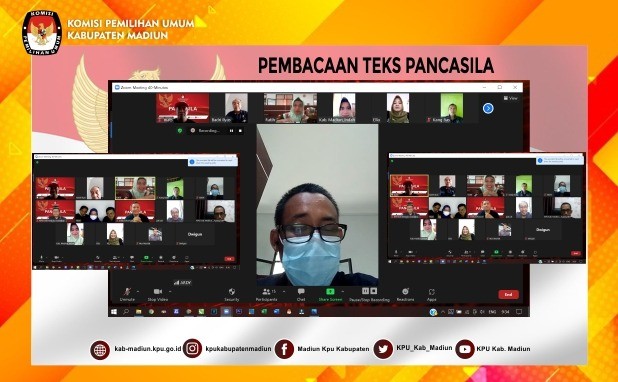 KPU kabupaten Madiun Lakukan rutinitas Pembacaan Teks Pancasila via Daring.