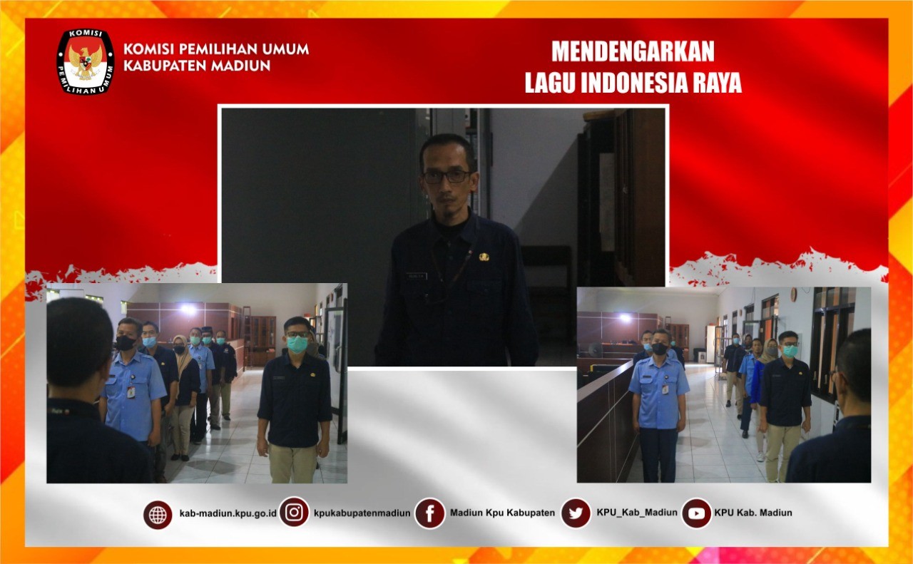 KPU Kabupaten Madiun Mendengarkan Lagu Indonesia Raya Secara Luring