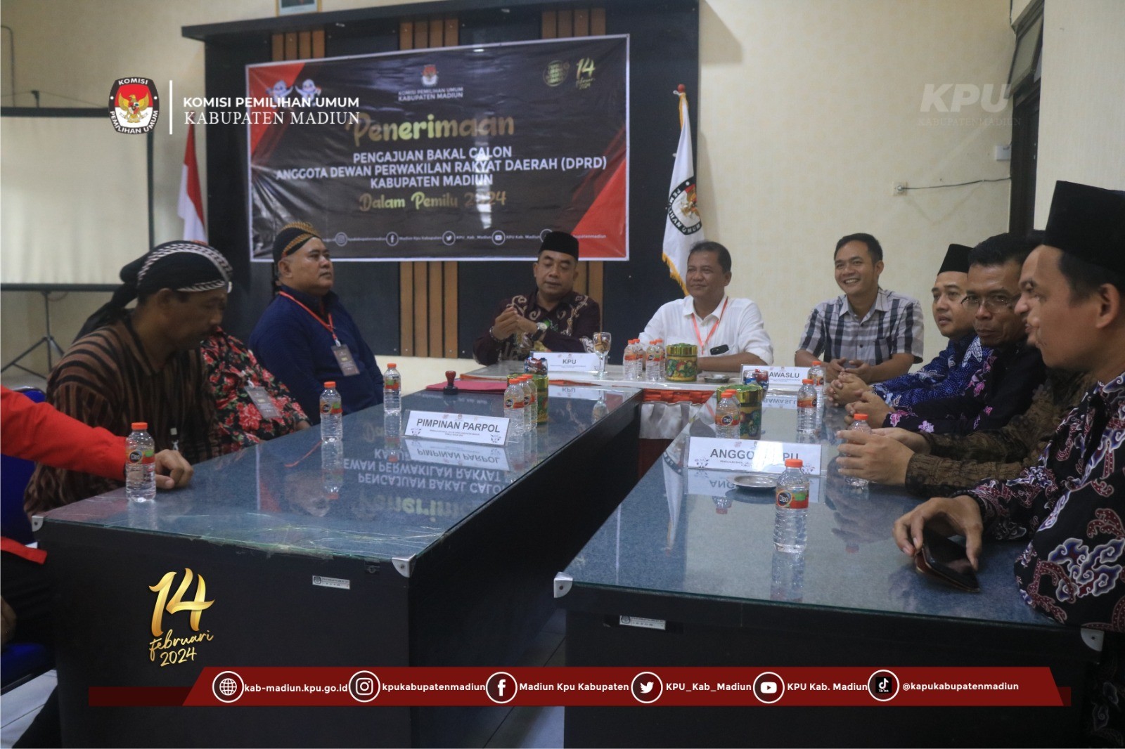 Madiun, http://kab-madiun.kpu.go.id Pagi ini kamis 11 Mei 2023 dari Partai Demokrasi Indonesia Perjuangan datang ke Kantor KPU Kabupaten Madiun untuk melaksanakan pendaftaran Bakal Calon Legislatif DPRD Kabupaten Madiun. Seluruh pendaftar dari PDI Perjuangan datang membawa Rombongan Dongkrek yang di temui langsung oleh Ketua KPU Kabupaten Madiun Ali Nur Wahyudi dan Seluruh Anggota Komisioner. Datang pukul 09.45 WIB Seluruh Peserta Bakal Calon DPRD melaksanakan pendafataran yang langsung di cek oleh masing masing operator SILON pada Dapilnya masing masing.