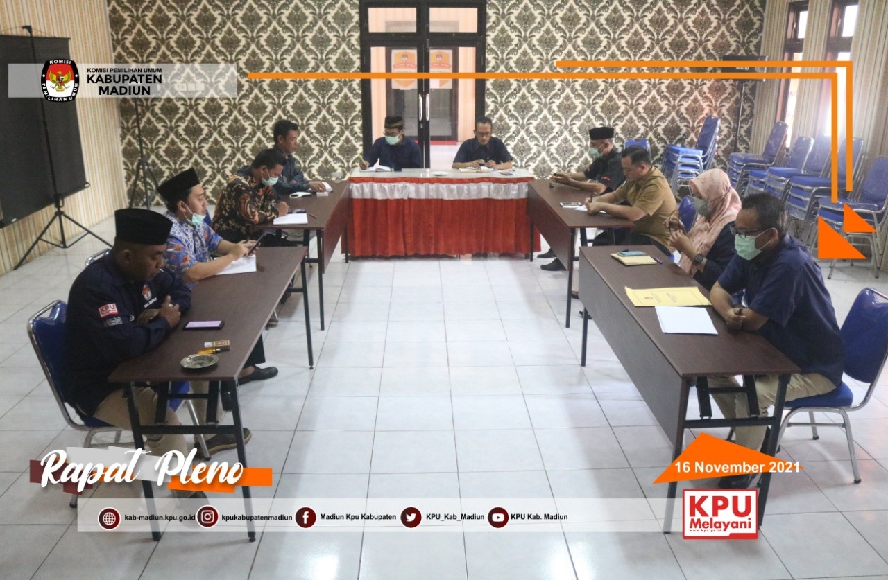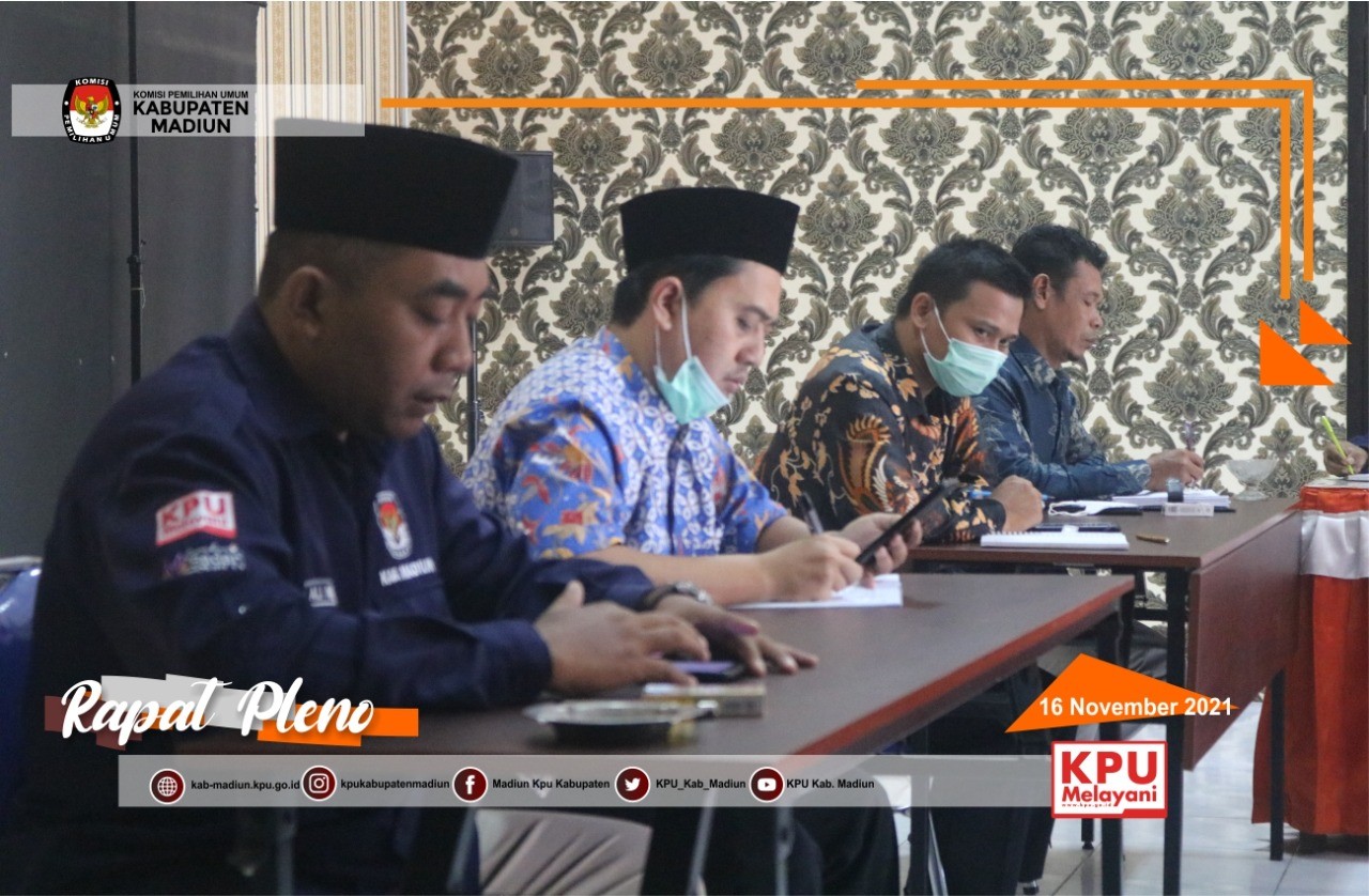 Madiun, http://kab-madiun.kpu.go.id Hari ini, KPU Kabupaten Madiun laksanakan kegiatan Rapat Pleno terkait Pelaporan Realisasi Anggaran sampai dengan bulan November tahun 2021. Kegiatan yang dilaksanakan pukul 09.00 WIB ini dipimpin oleh Ketua KPU Kabupaten Madiun Ali Nur Wahyudi dan dihadiri oleh Seluruh Komisioner, Sekretaris dan juga Seluruh Sub Koordinator Bagian.