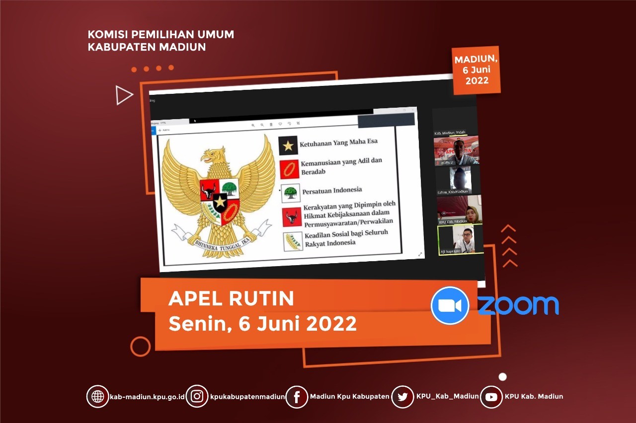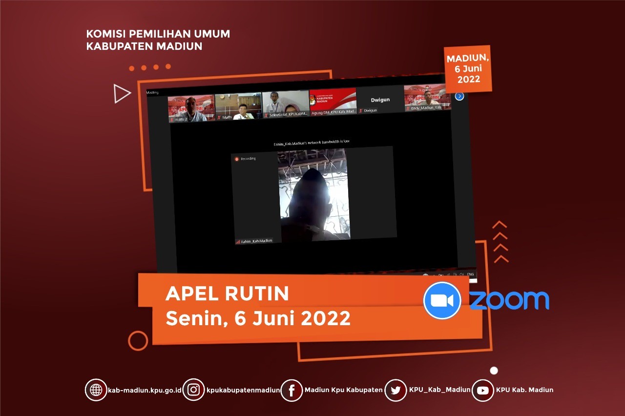 Madiun, http://kab-madiun.kpu.go.id Hari ini KPU Kabupaten Madiun laksanakan kegiatan Apel Rutin yang dilakukan via daring mulai pukul 08.00 WIB, kali ini dipimpin oleh Komisioner Divisi Sosialisasi Pendidikan Pemilih dan Partisipasi Masyarakat Fahim Amrillah dengan peserta seluruh Personel KPU Kabupaten Madiun. Dalam Amanatnya Fahim menyampaikan beberapa hal untuk menghadapi Tahapan Pemilu 2024 yang sudah semakin dekat, sebagai persiapan menyongsong Pemilu 2024 seluruh personel KPU Kabupaten Madiun diharapkan untuk melakukan Konsolidasi Internal juga mempersiapkan segala sesuatunya. Dan juga kegiatan untuk Menghadapi Pemilu Serentak 2024 seluruh ASN KPU Kabupaten Madiun mengikuti Pelatihan Tata Kelola Pemilu sebagai wujud ikhtiar bersama. tak lupa Fahim juga mengingatkan bahwasannya keadaan sudah mulai normal kembali supaya bisa melaksanakan seluruh kegiatan yang diberikan dengan lebih baik kembali.