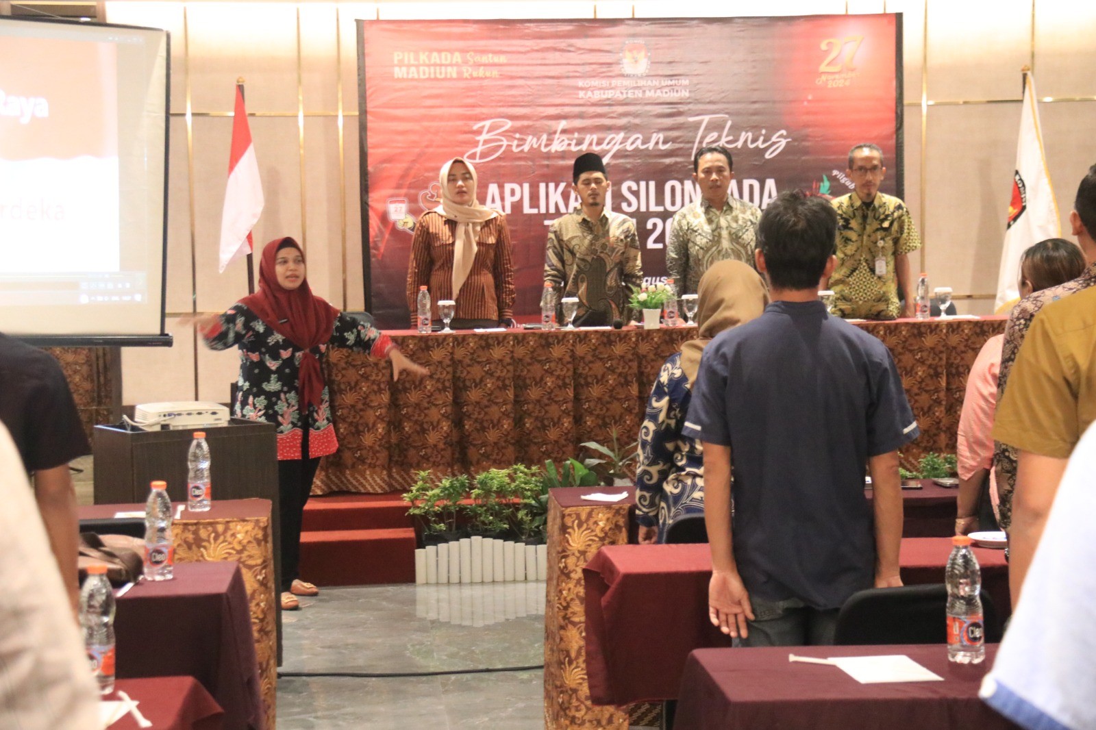 Dalam Sambutannya Lutfi Menyampaikan terkait alur dalam pendaftaran Bakal Calon Bupati dan Wakil Bupati Madiun tahun 2024 ini dimulai melalui Aplikasi SILONKADA yang diharuskan mengupload berkas pada aplikasi tersebut. dilanjutkan pelaksanaan Bimtek aplikasi SILONKADA disampaikan oleh Staf ASN Divisi Teknis dan Hubmas Endy Setiawan selaku admin dari aplikasi SILONKADA.