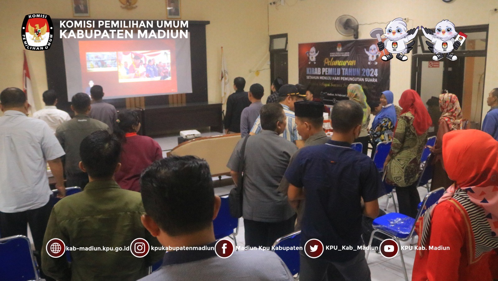 Madiun, http://kab-madiun.kpu.go.id Sore ini KPU Kabupaten Madiun mengadakan kegiatan Nonton Bareng yang turut mengundang Bawaslu Kabupaten Madiun, Seluruh LO Partai dan Seluruh PPK Kabupaten Madiun dalam acara Peluncuran Kirab Pemilu Tahun 2024. Kegiatan ini dilaksanakan Di aula KPU Kabupaten Madiun yang dimulai pukul 14.00 WIB. Kegiatan Kirab yang diadakan oleh KPU RI ini di ikut seluruh KPU se-indonesia. Peluncuran Kirab ini dilaksanakan di Kantor KPU RI, Kantor KIP Aceh, Kantor KPU Kota Batam, Kantor KPU Provinsi Kalimantan Barat, Kantor Provinsi Kalimantan Utara, Kantor KPU Kabupaten Morotai, Kantor KPU Provinsi NTT, Kantor KPU Provinsi Papua. Kegiatan Peluncuran Kirab ini dilaksanakan dengan Lancar.