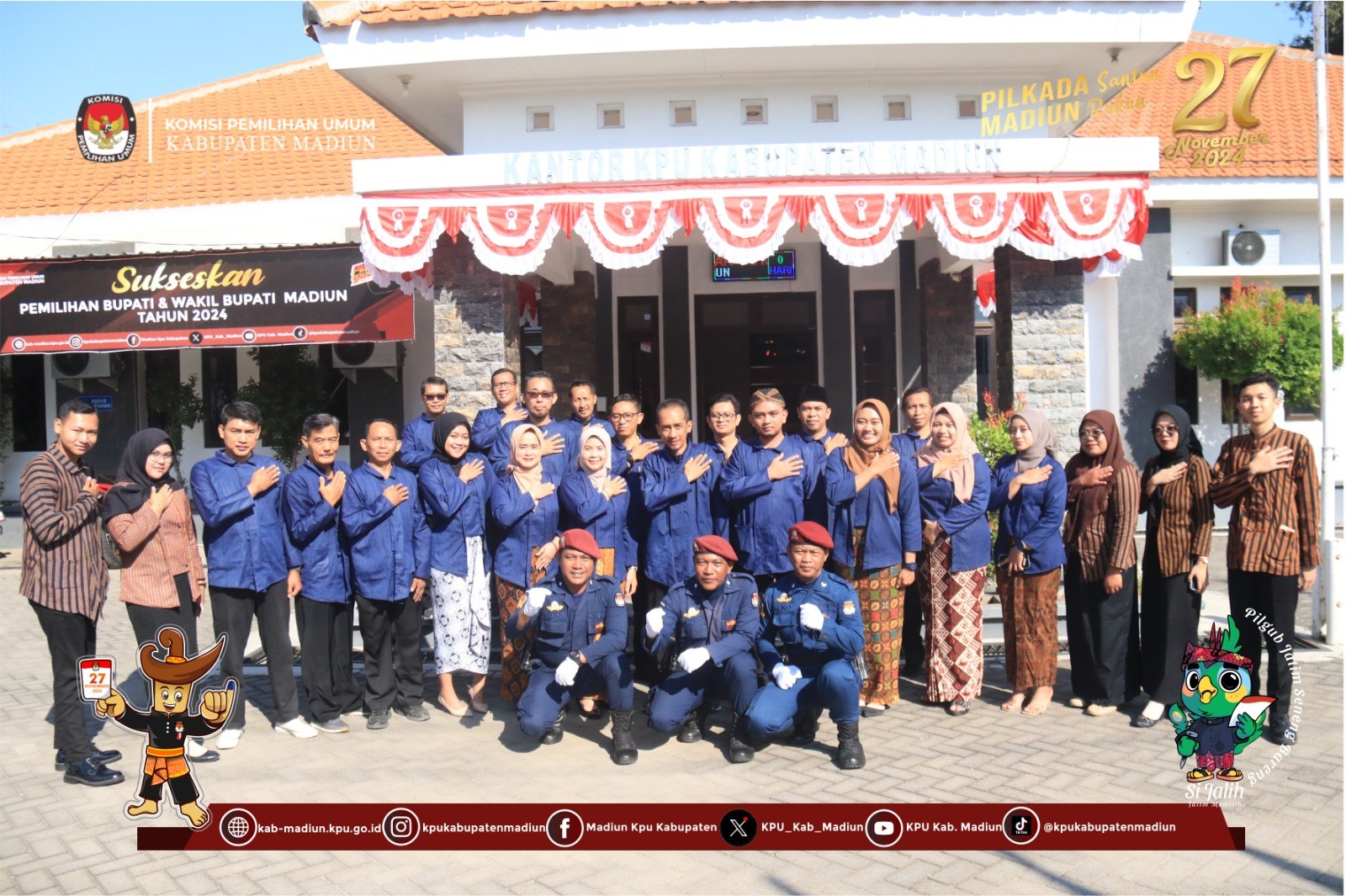 Madiun, http://kab-madiun.kpu.go.id Dengan Tema “Nusantara Baru, Indonesia Maju” KPU Kabupaten Madiun laksanakan kegiatan Upacara Bendera memperingati HUT Kemerdekaan Republik Indonesia ke 79 th. Kegiatan Upacara yang dimulai pukul 08.00 WIB yang bertempat di Halaman Kantor KPU Kabupaten Madiun ini di pimpin oleh Komisioner Divisi Perencanaan Data dan Informasi Irsyad Kholis Fatchurrozaq dan dihadiri oleh Anggota Komisioner, Sekretaris KPU Kabupaten Madiun dan Seluruh Staf Personel KPU Kabupaten Madiun.