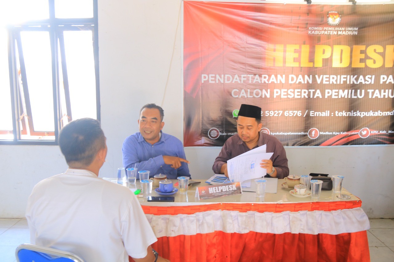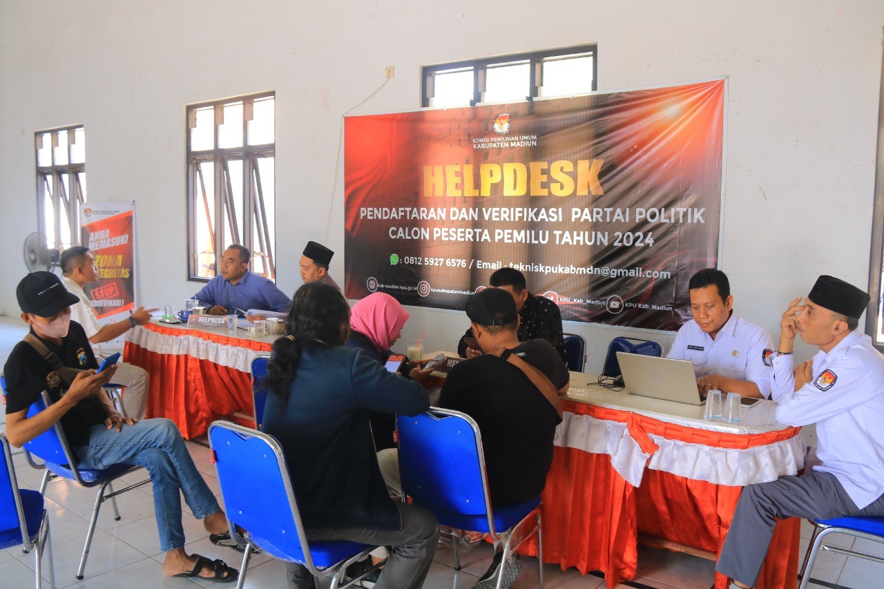 Diruangan Helpdesk yang sudah disiapkan, utusan DPC Partai Demokrat ditemui langsung oleh Ketua KPU Kabupaten Madiun Ali Nur Wahyudi didampingi Jumangin, Komisioner Divisi Teknis Penyelenggaraan, dan Fahim Amrillah, Divisi Sosdiklih Parmas. Dari pihak DPC Partai Demokrat Zaim Mahmudi selaku Wakil Sekretaris I datang untuk berkonsultasi terkait SIPOL dan Menyerahkan Dokumen SK Pengurus dari Partai Demokrat.