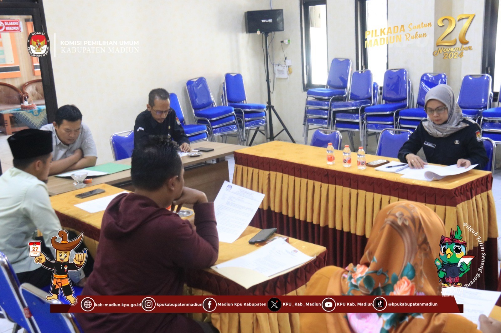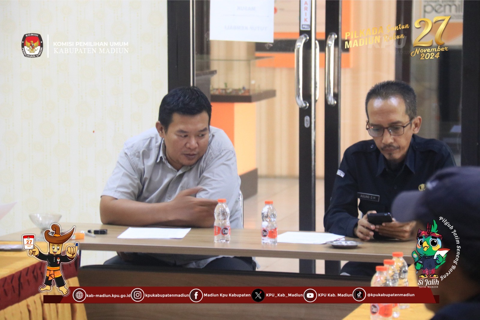 Pembukaan Rapat Pleno yang di pimpin oleh Ketua KPU Kabupaten Madiun Nur Anwar dan disampaikan oleh Sekretaris KPU Kabupaten Madiun Agung Dwi Murdianto terkait dengan pembahasan Pelaksanaan Kegiatan Monitoring dan Evaluasi Daftar Pemilih Hasil Pemutakhiran (DPHP) di Tingkat Kecamatan Se- Kabupaten Madiun, Untuk Jadwal Pelaksanaan akan dibahas lebih lanjut nantinya.