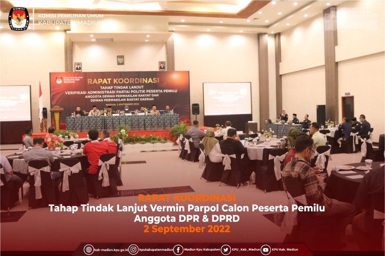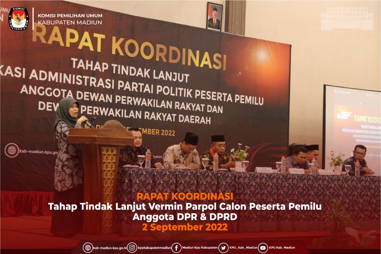 Ketua KPU Kabupaten Madiun Ali Nur Wahyudi menyampaikan bahwasannya pentingnya pelaksanaan Rakor ini agar Dari pihak Parpol mengetahui Hak dan Wewenang dalam Penetapan Lolos atau tidaknya Parpol sebagai peserta pemilu, yakni merupakan Keputusan dari KPU RI yang akan disampaikan melalui aplikasi SIPOL, diharapkan dengan adanya waktu perbaikan ini bisa dimanfaatkan dengan baik untuk mencukupi seluruh persyaratan yang dibutuhkan.