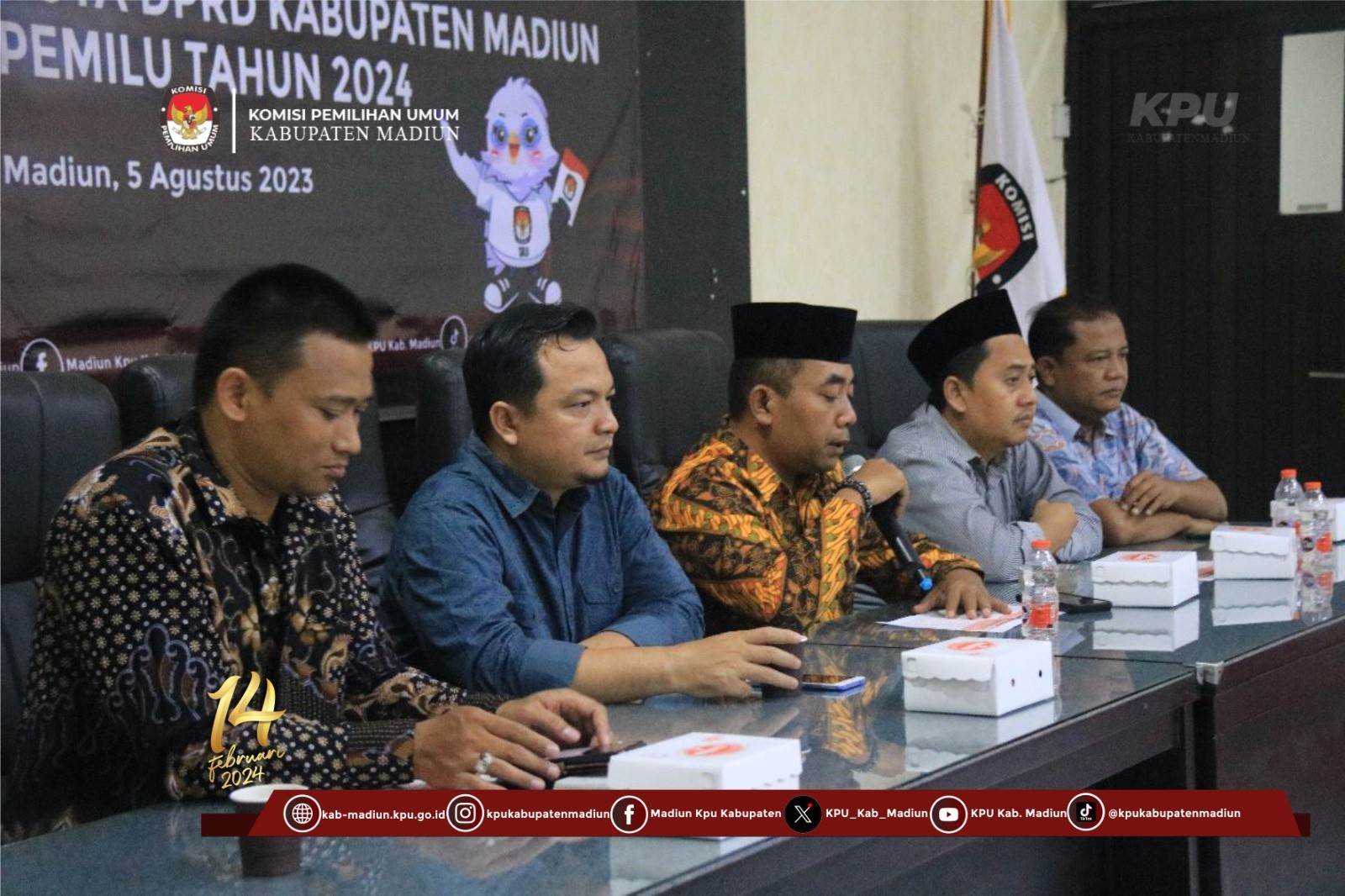 Madiun, http://kab-madiun.kpu.go.id Sabtu Malam 5 Agustus 2024, KPU Kabupaten Madiun laksanakan kegiatan penyerahan Berita Acara Hasil Verifikasi Administrasi Bakal Calon DPRD Kabupaten Madiun tahun 2024. Giat yang dibuka oleh Ketua KPU Kabupaten Madiun Ali Nur Wahyudi ini dihadiri oleh Seluruh Komisioner ( Fahim Amrillah, Tri Haryono, Nur Wachid Nasrulloh, Jumangin) serta dari Pihak Bawaslu Kabupaten madiun Slamet Widodo, juga Ketua dan L.O Partai Politik yang terdaftar.