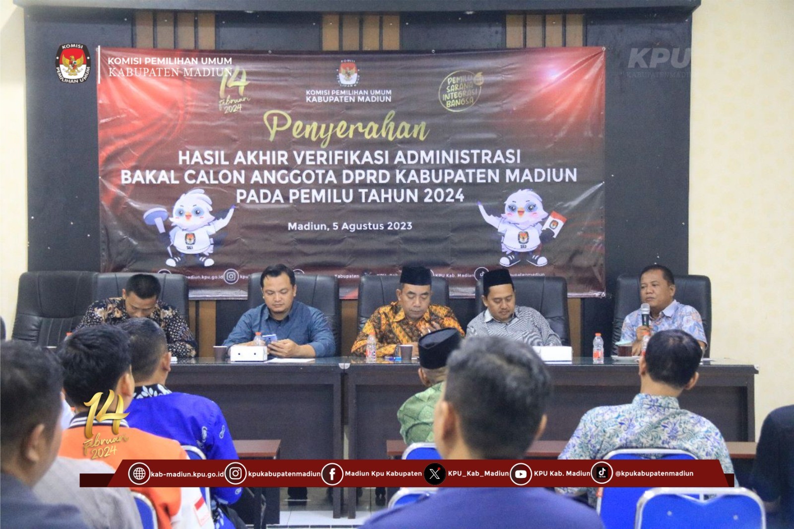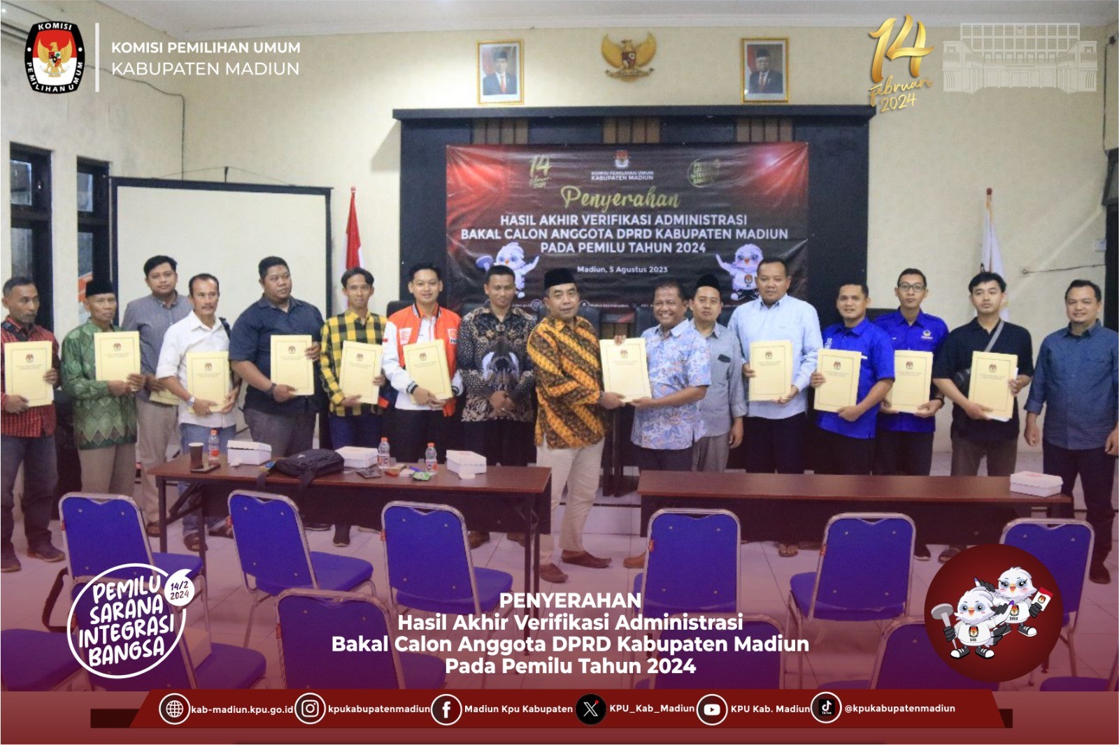 Penyerahan Hasil Akhir Vermin Bakal Calon DPRD Kabupaten Madiun tahun 2024