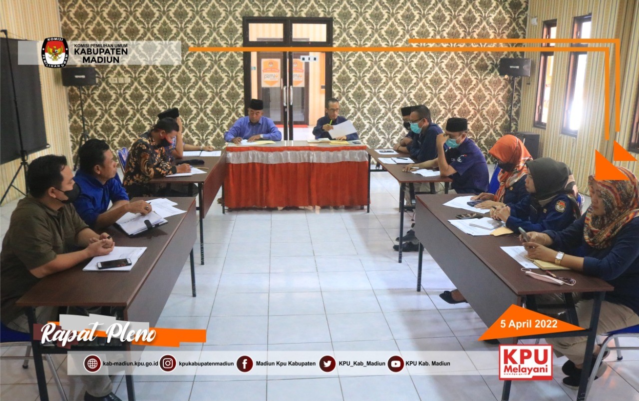 Madiun, http://kab-madiun.kpu.go.id Pagi ini KPU Kabupaten Madiun laksanakan Rapat Pleno yang dipimpin oleh Ketua KPU Kabupaten Madiun Ali Nur Wahyudi dengan peserta Anggota Komisioner , Sekretaris dan Seluruh Kasubbag. Rapat yang dimulai pukul 10.00 WIB ini bertempat di Aula KPU Kabupaten Madiun yang membahas Tentang Instruksi Menteri Dalam Negeri no. 20 tahun 2022. Wilayah Kabupaten Madiun kali ini masih masuk dalam level 2 yang mana dalam pelaksanaan kegiatan perkantoran dengan WFH 25% dan WFO 75% dimulai tanggal 5 april sampai dengan 18 April 2022. dalam hasil Rapat Pleno ini bahwasannya seluruh peserta Rapat menyetujui dan menerima seluruh insmendagri no. 20 tahun 2022 dengan catatan harus fleksibel dalam seluruh kegiatan kantor, jika dibutuhkan sewaktu-waktu untuk menjalankan tugas akan selalu siap siaga.