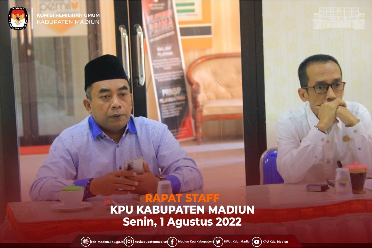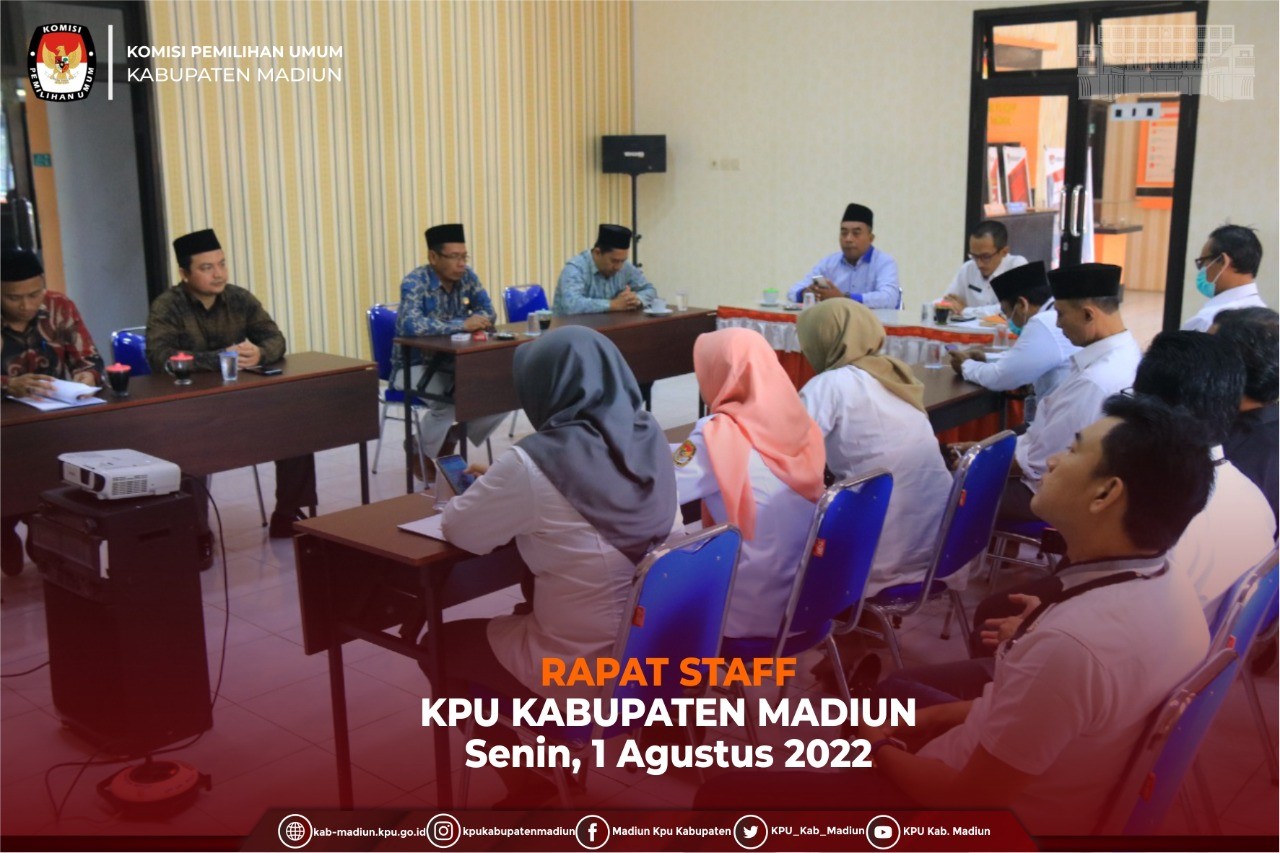 Madiun, http://kab-madiun.kpu.go.id Tahapan Pemilu Serentak tahun 2024 sudah mulai berlangsung, kali ini dilaksanakan Rapat Staf terkait Koordinasi Pembentukan tim Helpdesk SIPOL. Rapat Koordinasi ini di pimpin langsung oleh Ketua KPU Kabupaten Madiun Ali Nur Wahyudi yang mengingatkan pada saat ini sudah masuk dalam tahapan pemilu serentak kedepannya akan selalu bersinggungan dengan Partai Politik diharapkan bisa menjaga informasi dan setiap tugas yang dilaksanakan harus sesuai dengan Undang-undang dan PKPU tahapan yang berlaku.
