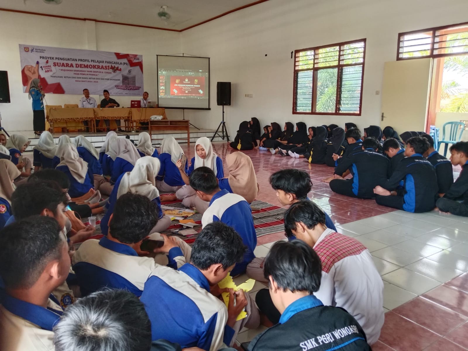 Madiun, http://kab-madiun.kpu.go.id KPU Kabupaten Madiun laksanakan Sosialisasi Pendidikan Pemilih di SMK PGRI Wonoasri yang bertempat di aula SMK PGRI Wonoasri. selaku pemberi materi Komisioner Divisi Sosdiklih Parmas dan SDM Fahim Amrillah didampingi dengan operator menyampaikan Pendidikan Pemilih kepada seluruh siswa siswi di SMK tersebut yang saling berkaitan dengan kurikulum Proyek Penguatan Profil Pelajar Pancasila (P5). kegiatan ini dilaksanakan mulai pukul 09.00 WIB sampai dengan 11.00 WIB.