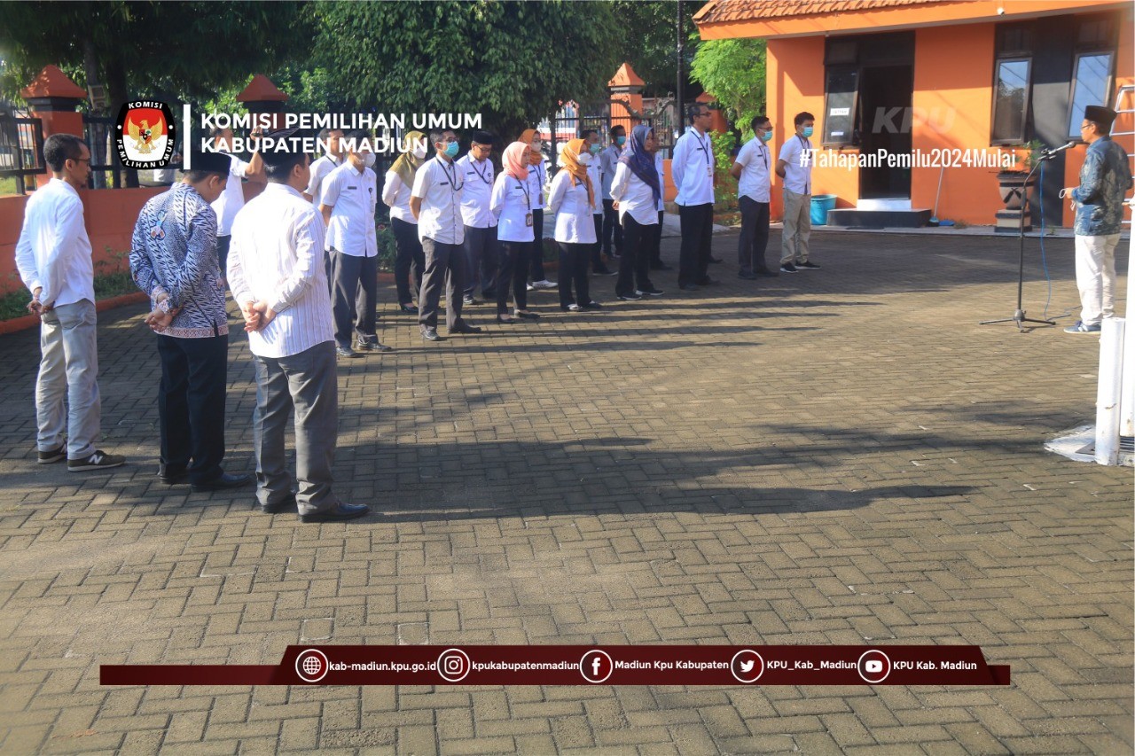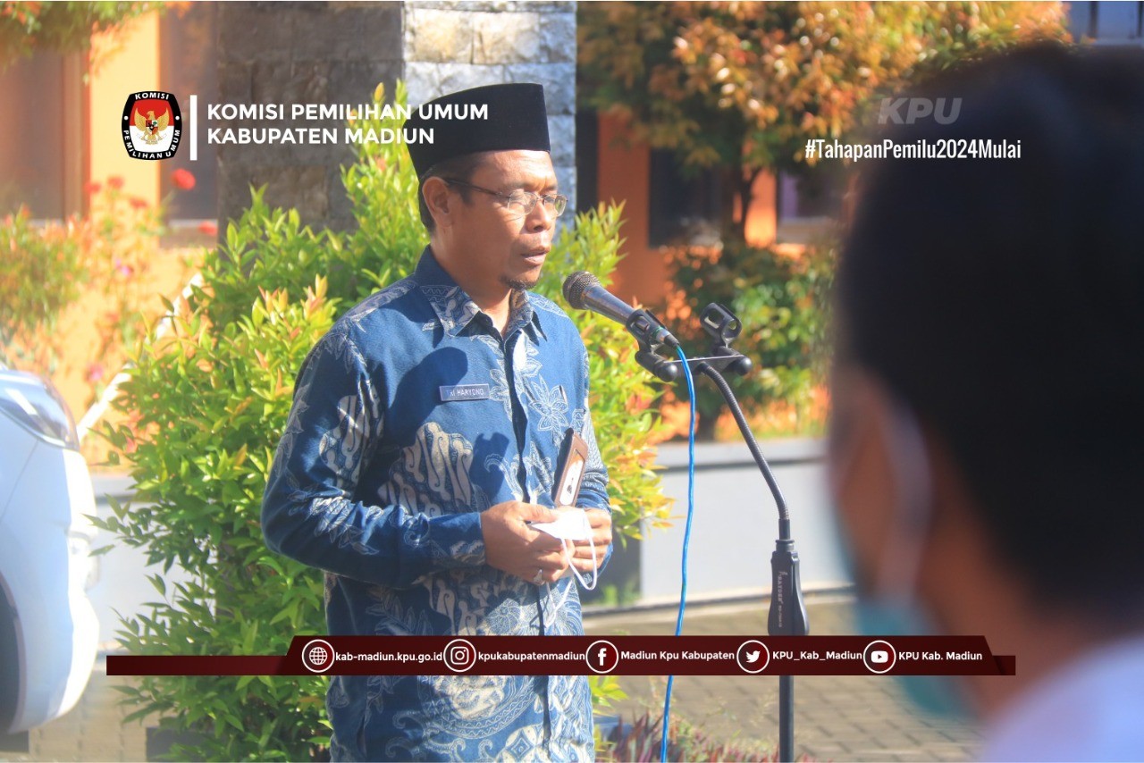Menurut Tri dalam amanatnya, beliau menyampaikan yakni KPU sebagai penyelenggara pemilu bahwasannya dalam pelaksanaan pemilu serentak ini merupakan tugas yang berat baik dari seluruh rangkaian kegiatannya terkait media sosial akan menjadi sorotan utama saat berlangsungnya pemilu serentak 2024. Apel Pagi yang dimulai pukul 08.00 WIB ini bertempat di halaman kantor KPU Kabupaten Madiun.