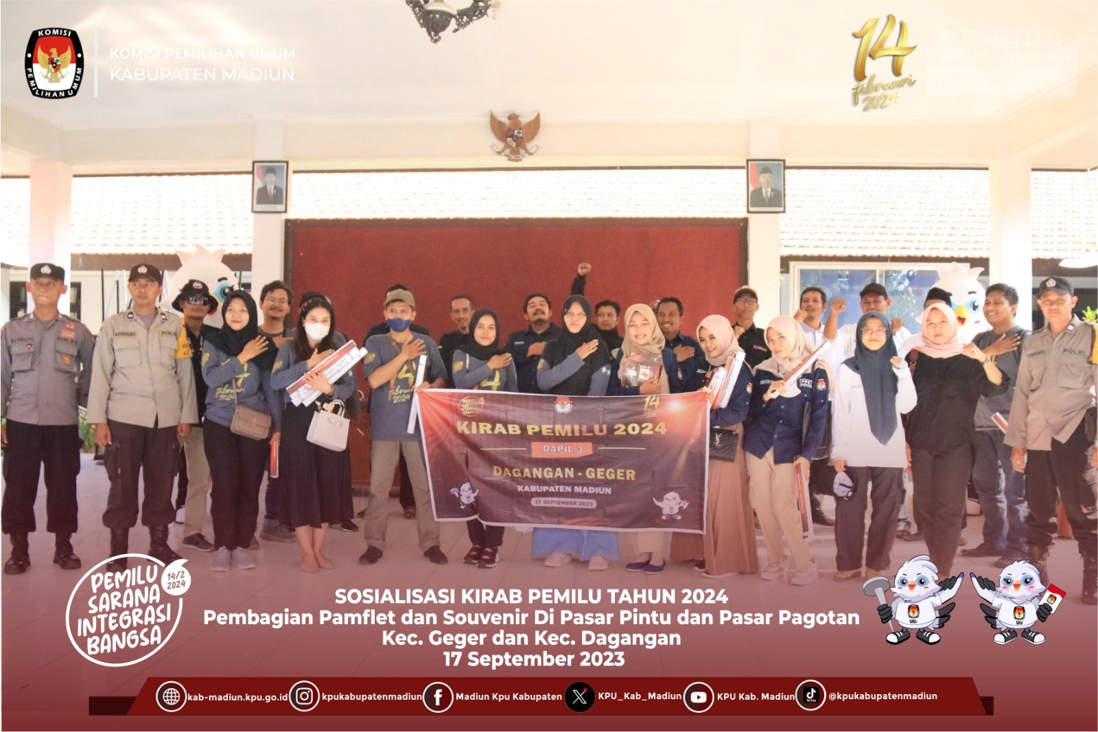 Madiun , http://kab-madiun.kpu.go.id Hari ini KPU Kabupaten Madiun laksanakan 2 sesi kegiatan yang di bagi pada wilayah Kecamatan Wonoasri dan Wilayah Dapil 2 yakni Kecamatan Geger dan Dagangan. Kegiatan Sosialisasi Kepemiluan ini dilaksanakan mulai pukul 07.30 WIB pada sesi pertama dan 14.00 WIB pada sesi ke 2. Ikut hadir dalam giat ini yakni Komisioner Divisi Rendatin Nur Wachid Nasrulloh, dan Komisioner Divisi Hukum dan Pengawasan Tri Haryono serta Sekretaris KPU Kabupaten Madiun Agung Dwi Murdianto dan jajaran sekretariatnya . serta PPK & PPS Kecamatan Wonoasri serta PPK & PPS kecamatan Dagangan dan PPK & PPS kecamatan Geger.
