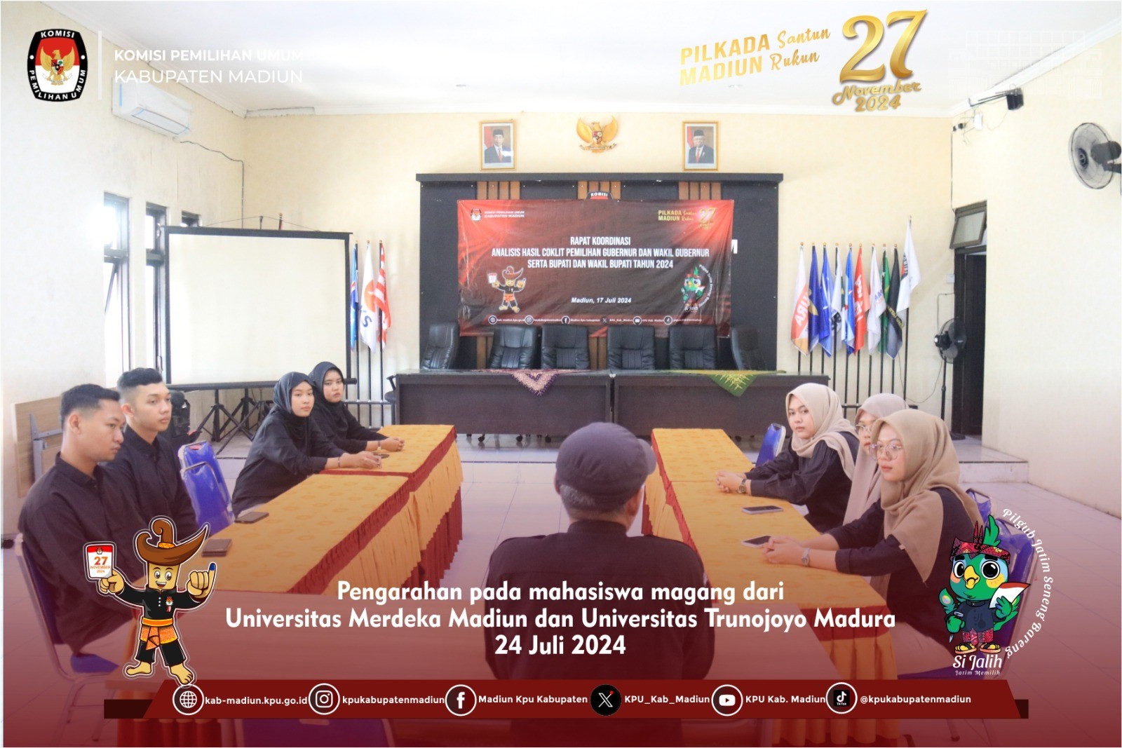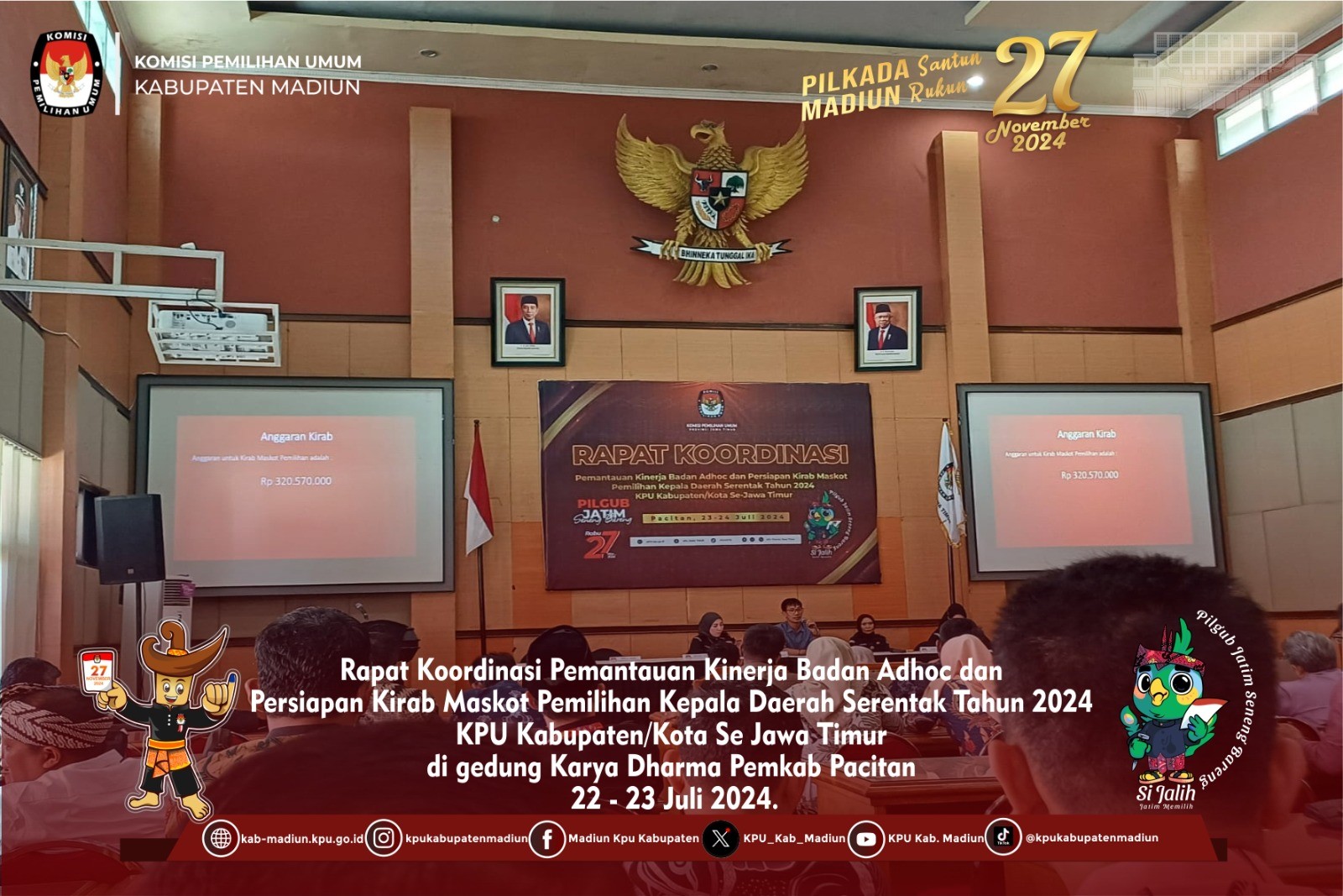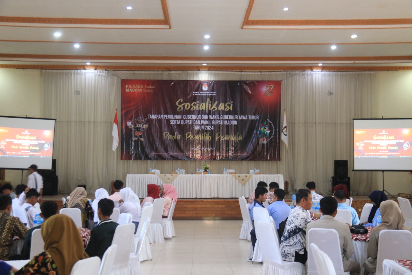 Madiun, http://kpu.kab-madiun.go.id KPU laksanakan kegiatan sosialisasi pemilih pemula, kegiatan tersebut dihadiri SMA/SMK seKabupaten Madiun dan dibuka oleh Ketua KPU Kabupaten Madiun Nur Anwar dan menyampaikan mengenai KPU memiliki tanggung jawab moral untuk meningkatkan partisipasi pemilih untuk membangun Kabupaten Madiun yang lebih baik dan segmentasi pemilih pemula, membangun persepsi guna memilih Kepala Daerah. Kamis,(25/7) Dalam kegiatan sosialisasi ini Komisioner Divisi Sosialisasi Pendidikan Pemilih, Partisipasi Masyarakat dan SDM Luky Noviana Yuliasari ikut menyampaikan tagline dalam materinya tentang Pilkada Madiun, Pilkada santun Madiun rukun, Mensosialisasikan media sosial KPU Kabupaten Madiun, Dasar hukum dari Pemilihan Gubernur dan Wakil Gubernur, Bupati dan Wakil Bupati Pasal 18 ayat (4) Undang-Undang Dasar Negara Republik Indonesia Tahun 1945, menjelaskan mengenai prinsip penyelenggara pemilih, PKPU 9 tahun 2022 tentang partisipasi masyarakat, partisipasi politik masyarakat merupakan faktor penting dalam memilih pemimpin untuk 5 tahun mendatang, segmen pemilih dalam peningkatan partisipasi masyarakat (PKPU 9 Pasal 28 ayat 2 tahun 2022. “kenapa suara pemilih pemula dianggap penting dalam pemilihan pilkada?", pertanyaan yang diajukan Dalam kesempatan sesi tanya jawab setelah materi selesai. "memiliki peran yang sama dengan pemilih yang lama dan suara dianggap penting guna menentukan pemimpin 5 tahun kedepan, juga untuk meningkatkan partisipasi politik untuk kedepannya, hindari golput" Ujar Luky Setelah selesainya kegiatan ini dilanjutkan dengan sesi foto Bersama.