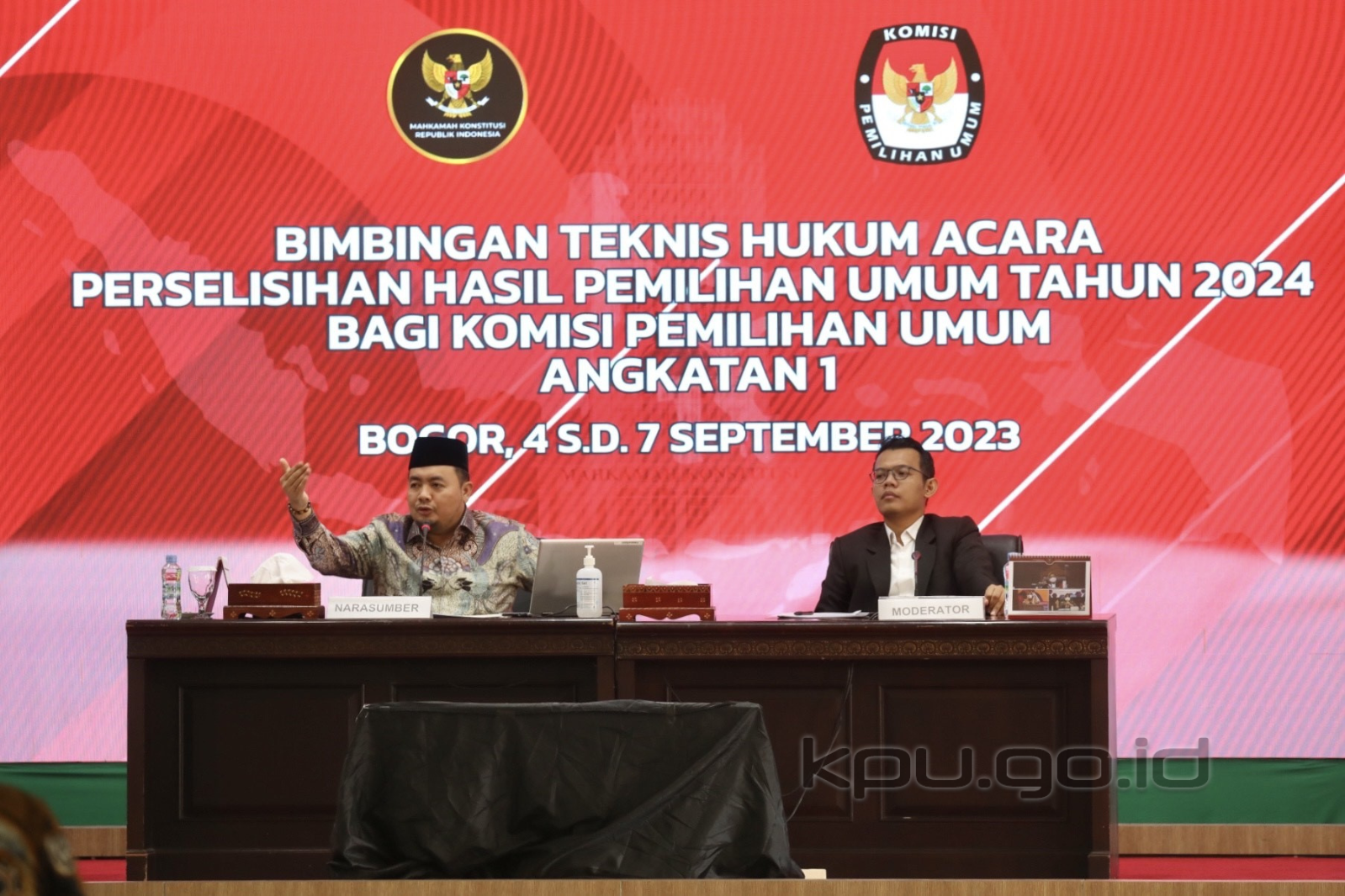Hal tersebut disampaikan Anggota KPU Mochammad Afifuddin saat hadir menjadi narasumber pada Bimbingan Teknis Hukum Acara Perselisihan Hasil Pemilihan Umum Tahun 2024 bagi Komisi Pemilihan Umum Angkatan I, di Pusdik Pancasila dan Konstitusi MK, Bogor, Selasa (5/9/2023). Pada kesempatan tersebut Afif memaparkan materi berjudul “Potensi Sengketa dalam Penyelenggaraan Pemilu 2024”.