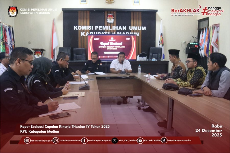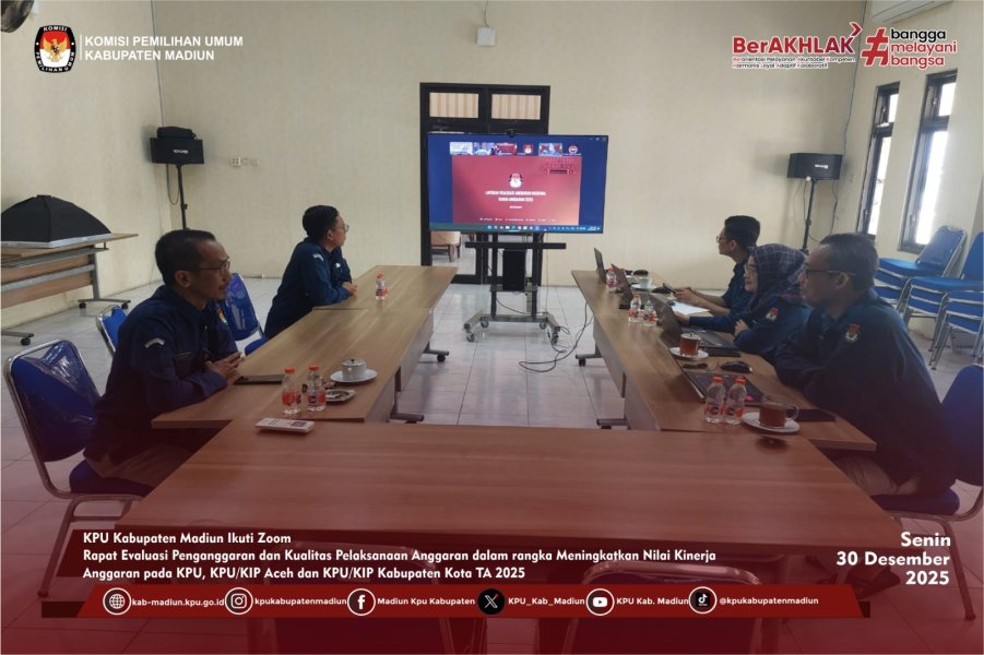 Madiun — Dalam upaya memperkuat akuntabilitas kinerja serta meningkatkan kualitas pelaporan kinerja instansi, KPU Kabupaten Madiun mengikuti Bimbingan Teknis (Bimtek) Penyusunan Laporan Kinerja Instansi Pemerintah (LKjIP) Tahun 2025 dan Evaluasi Sistem Akuntabilitas Kinerja Instansi Pemerintah (SAKIP) satuan kerja. Kegiatan yang diselenggarakan oleh Sekretariat Jenderal KPU tersebut dilaksanakan secara daring melalui Zoom Meeting pada Senin (29/12/2025) pukul 09.00–16.00 WIB. Bimtek ini merupakan bagian dari upaya berkelanjutan untuk meningkatkan pemahaman dan kapasitas satuan kerja dalam menyusun laporan kinerja yang terukur, sistematis, dan sesuai dengan ketentuan peraturan perundang-undangan. Dalam kegiatan ini, KPU Kabupaten Madiun menugaskan Sekretaris KPU Kabupaten Madiun, Kepala Subbagian Perencanaan, Data, dan Informasi, serta operator e-Monev dan e-Lapkin. Keikutsertaan tersebut mencerminkan komitmen KPU Kabupaten Madiun dalam memperkuat tata kelola pemerintahan yang baik melalui penerapan sistem akuntabilitas kinerja yang optimal. Potret Perwakilan KPU Kabupaten Madiun mengikuti Bimtek Selama bimtek berlangsung, peserta menerima pemaparan materi mengenai kebijakan dan teknis penyusunan LKjIP Tahun 2025, mekanisme evaluasi penerapan SAKIP pada satuan kerja, serta strategi peningkatan kualitas pelaporan kinerja. Peserta juga dibekali pemahaman terkait optimalisasi penggunaan aplikasi e-Monev dan e-Lapkin sebagai instrumen pendukung monitoring, evaluasi, dan pelaporan kinerja instansi pemerintah. Melalui kegiatan ini, diharapkan KPU Kabupaten Madiun mampu menyusun LKjIP secara lebih komprehensif dan akurat, serta menjadikan evaluasi SAKIP sebagai sarana refleksi untuk meningkatkan efektivitas pelaksanaan program dan kegiatan. KPU Kabupaten Madiun berkomitmen untuk terus meningkatkan kualitas perencanaan, pelaksanaan, dan pelaporan kinerja sebagai bentuk pertanggungjawaban kepada publik, sekaligus mendukung terwujudnya birokrasi yang profesional, transparan, dan akuntabel. Penulis: Anissa Editor: Endy S.