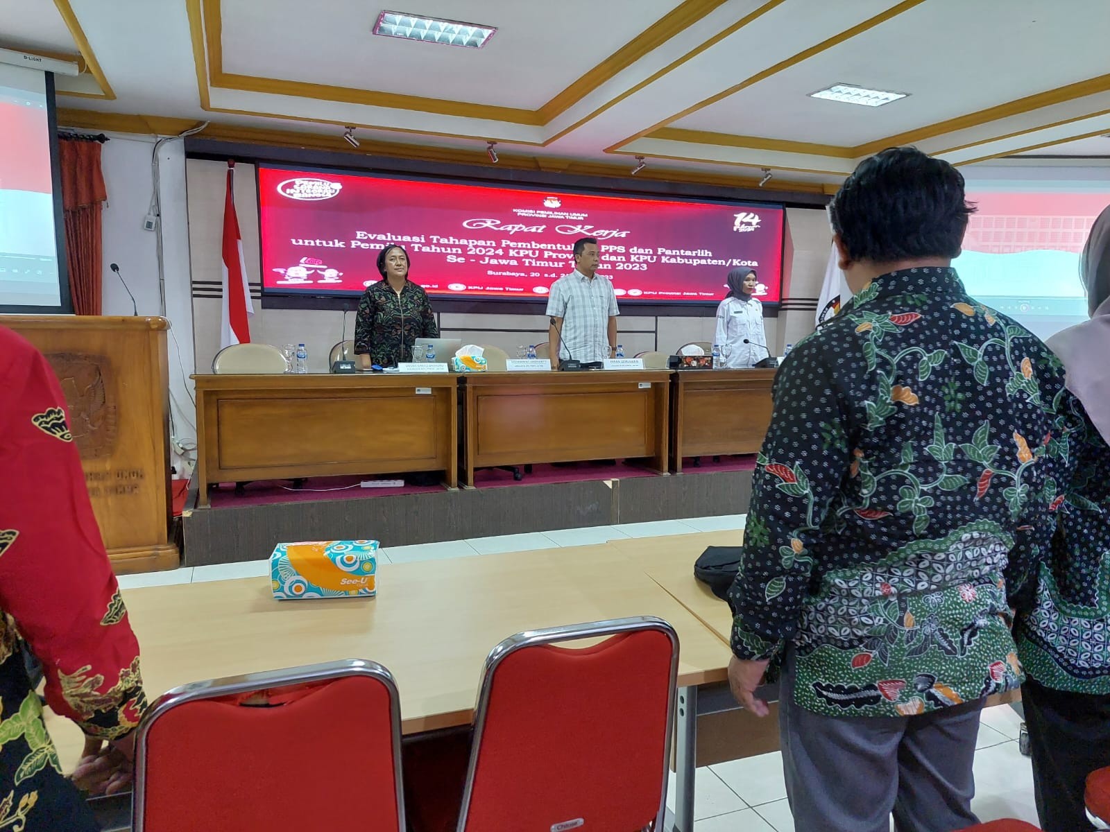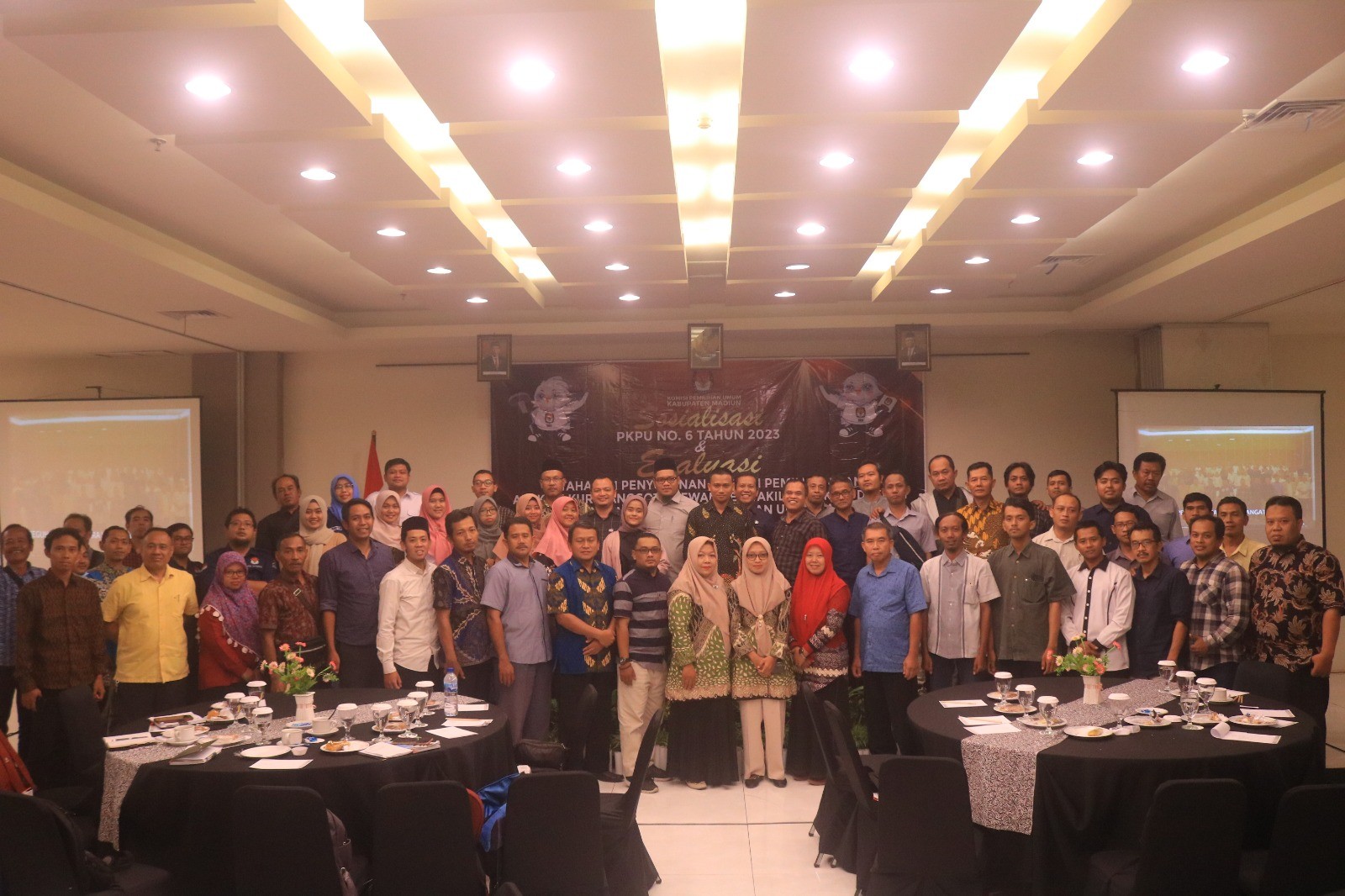 Madiun, http://kab-madiun.kpu.go.id Hari ini Komisi Pemilihan Umum Kabupaten Madiun mengadakan Kegiatan Sosialisasi yang dimulai pukul 13.00 WIB bertempat di ballroom Sun Hotel Kota Madiun. Kegiatan yang dilaksanakan Dalam Rangka Sosialisasi PKPU no 6 Tahun 2023 dan Evaluasi tahapan Penyusunan Daerah Pemilihan dan Alokasi kursi Anggota Dewan Perwakilan Rakyat Daerah Kabupaten Madiun Dalam Pemilihan Umum Tahun 2024 ini, turut mengundang dari Pihak Partai Politik wilayah Kabupaten Madiun, Bawaslu Kabupaten Madiun serta Seluruh Perwakilan PPK se-kabupaten madiun pada Divisi Teknis & Parmas serta Hukum. Kegiatan Sosialisasi dan Evaluasi ini diawali dengan menyanyikan lagu indonesia raya secara bersama-sama, serta pembukaan acara oleh Ketua KPU Kabupaten Madiun Ali Nur Wahyudi. Dalam pembukaannya Ali menyampaikan bahwasannya dalam wilayah Kabupaten Madiun ini terkait dengan Dapil masih sangat Revelan untuk tidak mengubah Alokasi Dapil. Beliau juga mengingatkan kepada para LO dan Pimpinan Parpol supaya bersiap siap di Awal bulan Mei ini untuk mengikuti pelaksanaan pendaftaran menjadi calon anggota legislatif. Beliau juga berharap di Kabupaten Madiun dalam pelaksanaan pemilu sampai dengan puncak tanggal 14 Februari 2024 akan berjalan Sukses sesuai dengan yang direncanakan yang sesuai dengan harapan masyarakat dan kita bersama. Dalam kesempatan kali ini dilanjut memasuki materi yang di moderatori oleh Staf ASN Teknis dan Hubmas Endy Setiawan serta Komisioner Divisi Teknis Penyelenggaraan Jumangin yang menyampaikan Materi Sosialisasi Peraturan Komisi Pemilihan Umum No. 6. Selaku Narasumber dalam kegiatan evaluasi ini yakni oleh Komisioner Divisi SDM dan Organisasi Bawaslu Kabupaten Madiun Wahyudi. Beliau menyampaikan seluruh runtutan dari pengawasan Bawaslu pada Alokasi kursi anggota dewan serta evalusi tahapan dalam penyusunan kepada seluruh peserta kegiatan. Wahyudi menyampaikan bahwasannya pada wilayah Kabupaten Madiun mulai dari pelaksanaan Pemilu di tahun 2004 sampai dengan saat ini, bahwa Penduduk Kabupaten Madiun berjumlah sekitar 700rb dan tidak pernah naik. Kegiatan ini dilanjutkan dengan sesi tanya jawab dan diakhiri dengan Foto bersama.