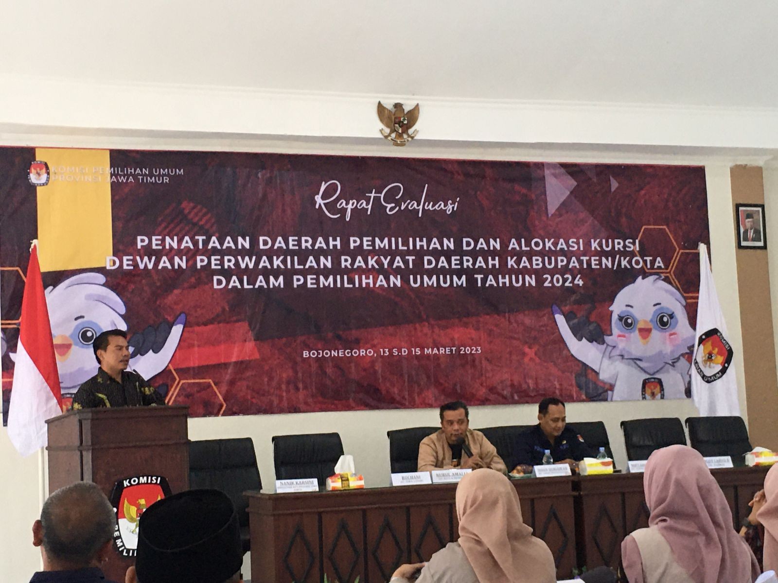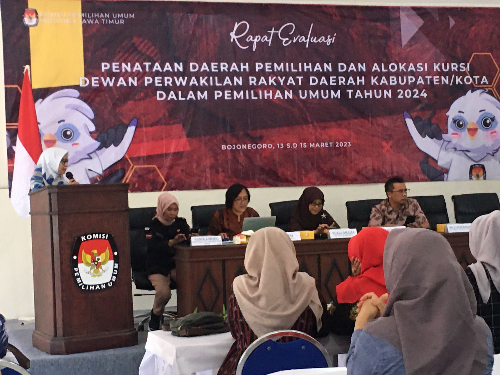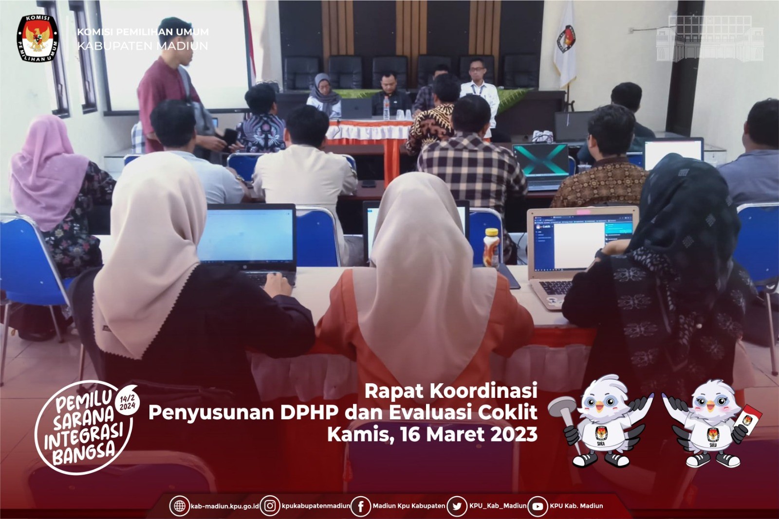 Madiun, http://kab-madiun.kpu.go.id Hari Ketiga Kegiatan berlangsung, Komisioner Divisi Teknis Penyelenggaraan Jumangin dan Staf ASN Teknis dan Hubmas Endy Setiawan mengikuti Rapat Evaluasi Penataan Dapil yang digelar KPU Provinsi Jawa Timur di KPU Kabupaten Bojonegoro, diisi dengan penyusunan rencana tindak lanjut. Acara dibuka dengan meneruskan sisa KPU Kabupaten/Kota yang belum memaparkan Daftar Inventaris Masalah dalam penataan Dapil dan Alokasi Kursi DPRD Kab/Kota. Penyusunan RTL dipimpin langsung oleh Insan Qoryawan, Divisi Teknis Penyelenggaraan KPU Provinsi Jawa Timur. Beberapa point disepakati bersama sebagai rencana tindak lanjut. Salah tau bentuk tindak lanjut adalah dengan mensosialisasikan PKPU No. 6 Tahin 2023 di masing-masing KPU Kabupaten/Kota. Seusai pelaksanaan penyusunan RTL, Rapat Evaluasi di lanjut dengan acara penutupan kegiatan. Penutupan dipimpin oleh Rokhani, Divisi SDM dan Litbang KPU Provinsi Jawa Timur dengan didampingi komisioner KPU Provinsi Jawa Timur yang lainnya dan Sekretaris KPU Provinsi Jawa Timur beserta jajarannya. Penulis : ( EnS)