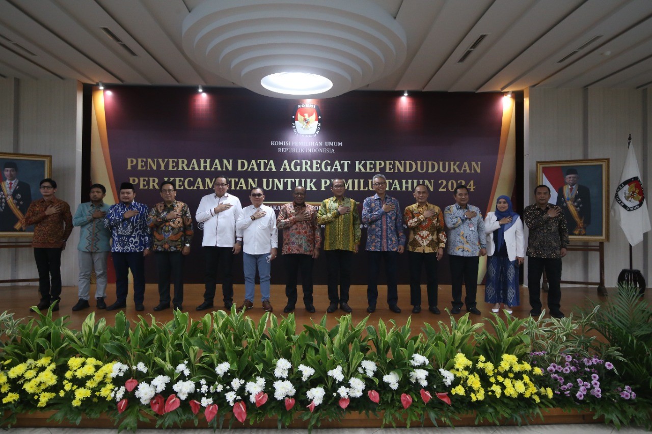 Jakarta, kpu.go.id – Komisi Pemilihan Umum (KPU) secara resmi menerima Data Agregat Kependudukan per Kecamatan (DAK2) secara simbolis dari Kemendagri RI yang diserahkan oleh Wamendagri John Wempi Wetipo, serta Rekapitulasi Data WNI per PPLN dari Kemenlu RI yang diserahkan Direktur Protokol dan Konsuler Kemenlu Andy Rachmianto, Jumat (14/10/2022) di Ruang Sidang Utama KPU. Sesuai amanat Undang-Undang 7 Tahun 2017 tentang Pemilihan Umum (Pemilu), KPU menetapkan jumlah kursi dan daerah pemilihan (dapil) untuk anggota DPRD kabupaten/kota. Tahapan ini dimulai pada 14 Oktober 2022 sampai 9 Februari 2023. Dalam pelaksanaannya, basis data yang digunakan adalah Data Agregat Kependudukan per Kecamatan (DAK2) yang disediakan oleh Kementrian Dalam Negeri (Kemendagri). Oleh karena itu kegiatan ini menjadi menjadi satu momentum penting sebagai simbol akan dimulainya kegiatan penyusunan dan penataan dapil untuk anggota DPRD kabupaten/kota. Dalam sambutan, Ketua KPU Hasyim Asy’ari menekankan pentingnya tahapan ini. “Bulan Oktober ini, kita akan memulai tahapan penting, karena di dalam pemilu langsung salah satu asasnya adalah langsung. Langsung itu rakyat pemilih yang telah memenuhi syarat akan didata, didaftar, dan dimasukkan dalam daftar pemilih untuk menjadi pemilih Pemilu 2024. Basis datanya nanti berasal dari Kemendagri yang akan disampaikan pada bulan Desember 2022 ini,” kata Hasyim. Kemendagri yang diwakili oleh Wakil Mentri, John Wempi Wetipo menjelaskan Kemendagri menyerahkan DAK2 untuk Pemilu Tahun 2024 kepada KPU. DAK2 tersebut berdasarkan data kependudukan Semester I Tahun 2022, dengan jumlah 275.361.267 jiwa terdiri dari laki-laki sebanyak 138.999.996 jiwa dan perempuan sebanyak 136.361.271 jiwa. “Data penduduk merupakan hal yang sangat fundamental dan menjadi salah satu unsur penting berdirinya suatu negara selain pemerintahan, wilayah dan pengakuan negara lain. Data penduduk menjadi dasar dalam menyusun kebijakan pembangunan,” kata John Wempi. Sementara itu, Kemenlu yang diwakili Direktorat Jenderal Protokol dan Konsuler, Andy Rachmianto menjelaskan, Kemenlu telah melakukan pendataan dan total warga negara yang berhak memilih di luar negeri pada Pemilu tahun 2024 per 12 Oktober 2022 berjumlah 2. 310.497 jiwa. Angka ini terdiri dari 1.430. 201 wanita dan 880.296 pria. Data dikumpulkan melalui 130 perwakilan Republik Indonesia yang tersebar di mancanegara. “Kemenlu akan terus memutakhirkan data agregat untuk penyusunan DP4 LN pada tahapan Pemilu selanjutnya, sehingga data tersebut akan menjadi semakin akurat dan semakin bisa diandalkan untuk mendukung pelaksanaan Pemilu 2024,” Andy Rachmianto Atas data agregrat berbasis Kecamatan maupun data warga negara kita yang berada di luar negeri yang disampaikan tersebut, KPU menyampaikan terima kasih kepada Kemendagri dan Kemenlu. Turut hadir pada kegiatan tersebut, Anggota KPU Betty Epsilon Idroon, Mochammad Afifuddin, Parsadaan Harahap, August Mellaz, dan Idham Holik bersama Sekretaris Jenderal KPU, Bernad Dermawan Sutrisno dan Deputi Bidang Dukungan Teknis, Eberta Kawima. Sementara dari Kemendagri hadir Dirjen Polpum Kemendagri, Bahtiar, Dirjen Dukcapil Kemendagri, Zudan Arif Fakrulloh, Sesditjen Dukcapil, Hani Syopiar Rustam, Direktur Poldagri, Syarmadani, serta Anggota Bawaslu Herwyn J.H. Malonda dan Anggota DKPP, I Dewa Kade Wiarsa Raka Sandi. (Humas KPU Arf/Foto: Dosen/ed dio)