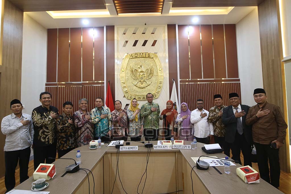 Jakarta, kpu.go.id – Komisi Pemilihan Umum (KPU) menerima kunjungan Komite I Dewan Perwakilan Daerah (DPD) RI, di Ruang Rapat Lantai 1 Gedung KPU, Selasa (4/10/2022). Tujuan dari kunjungan ini adalah untuk mendapatkan penjelasan terkait proses Pencalonan Perseorangan Peserta Pemilihan Umum Anggota (DPD). Hadir menerima kunjungan, Ketua KPU Hasyim Asy’ari serta Anggota KPU Betty Epsilon Idroos. Dari DPD RI hadir Ketua Ketua Andiara Aprilia Hikmat, Wakil Ketua Filep Wamafma, Darmansyah Husein, Anggota Komite I DPD RI Ahmad Kanedi, Muhammad Nuh, Ibnu Kholil, Misharti, Hilmy Muhammad, Abdul Kholik, Richard Pasaribu, Husain Alting Sjah dan Abraham Liyanto. Pada pertemuan ini, Hasyim menyampaikan beberapa isu strategis terkait proses pencalonan DPD seperti penggunaan formulir daftar dukungan dengan format yang sama pada Pemilu 2019, pemenuhan syarat dukungan sebelum melakukan pendaftaran hingga penggunaan Kartu Keluarga (KK) sebagai alternatif KTP-el. Juga disampaikan oleh Hasyim terkait pemanfaatan sistem informasi pencalonan DPD yang akan menggunakan Sistem Informasi Pencalonan (Silon). “Jadi bukan Sipol, tetapi Silon untuk pencalonan DPD,” ujar Hasyim. Sebelumnya Betty Epsilon Idroos menyampaikan adanya proses tanggapan masyarakat terkait syarat dukungan yang disampaikan calon perseorangan. Juga disampaikan verifikasi faktual dengan metode sampling. (humas kpu ri dianR/foto: dianR-james/ed diR)