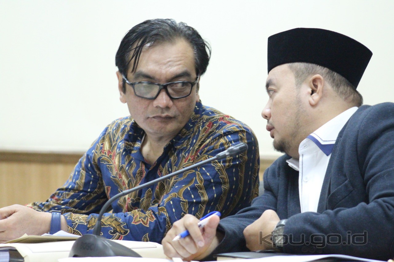 Turut hadir dalam sidang ini, Anggota KPU Idham Holik dan mendampingi Plt Kepala Biro Advokasi Hukum dan Penyelesaian Sengketa (AHPS) Nur Syarifah. (humas kpu dianR/foto: dianR/ed diR)