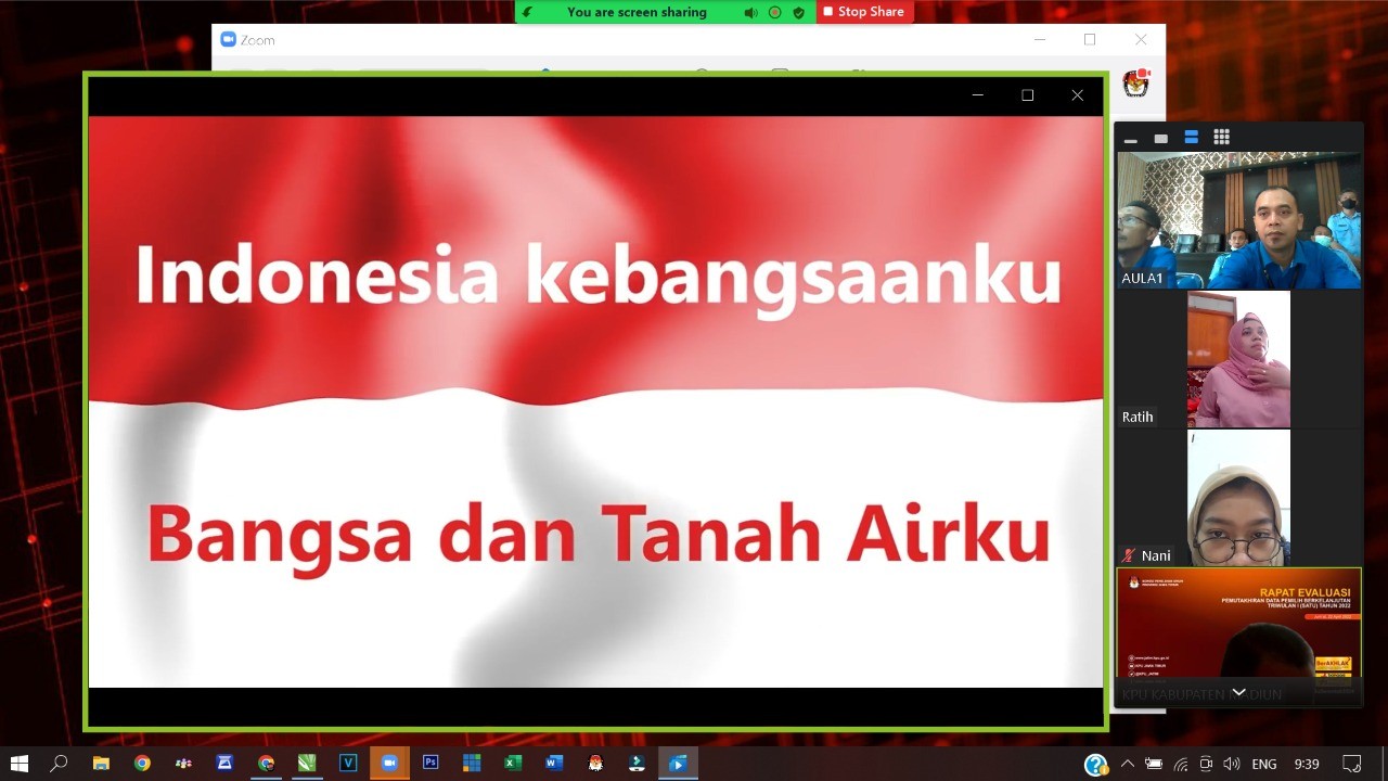 Madiun, http://kab-madiun.kpu.go.id KPU Kabupaten Madiun menghadiri undangan kegiatan dari KPU Provinsi Jatim yang dilaksanakan via Daring melalui aplikasi Zoom meeting. Kegiatan ini dilaksanakan dalam Rangka Forum Group Discussion (FGD) Pencermatan Anggaran dan Kegiatan Tahapan Pembentukan PPK dan PPS Pemilu Tahun 2024 KPU Provinsi dan KPU Kab/kota Se-Jawa Timur. Turut Hadir dalam Kegiatan ini Komisioner Divisi Sosialisasi Pendidikan Pemilih, Partisipasi Masyarakat dan SDM Fahim Amrillah yang didampingi oleh Kasubbag Hukum dan SDM Tri Wahyu Listyaningrum. Kegiatan yang dimulai pukul 10.00 WIB dipimpin dan dibuka langsung oleh Ketua KPU Provinsi Jawa Timur Choirul Anam dan Sekretaris KPU Provinsi Jatim Nanik Karsini. kegiatan dari ini dilaksanakan secara lancar dan diakhiri dengan sesi tanya jawab.