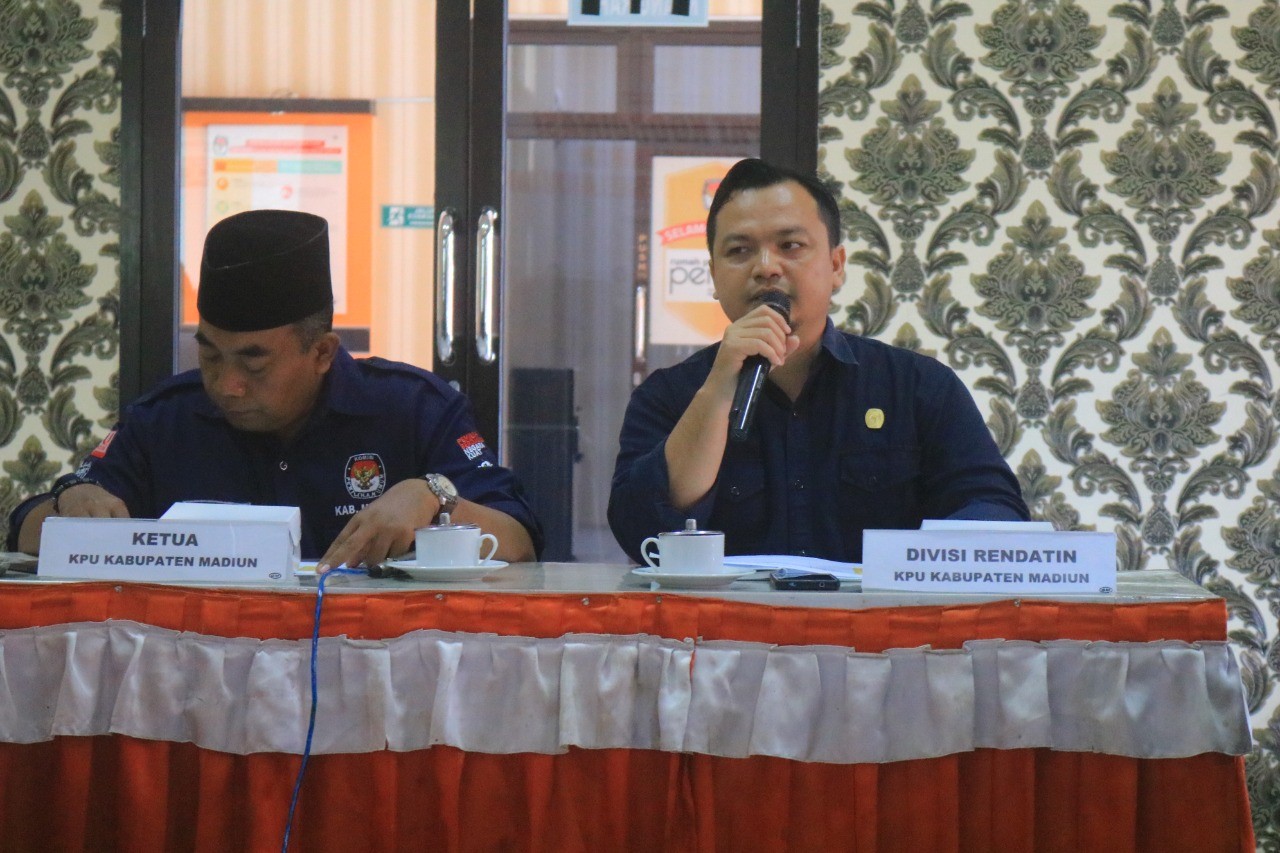 Seluruh peserta Rakor menyutujui dan menerima hasil yang sudah disampaikan, namun terkait data tersebut KPU Kabupaten Madiun menyampaikan masih banyak keterbatasan terkait sumber data yang diperoleh dan masih belum bisa menjangkau level bawah karena tidak adanya badan adhoc sehingga sangat perlu adanya masukan data dari masyarakat ataupun stakeholder terkait.