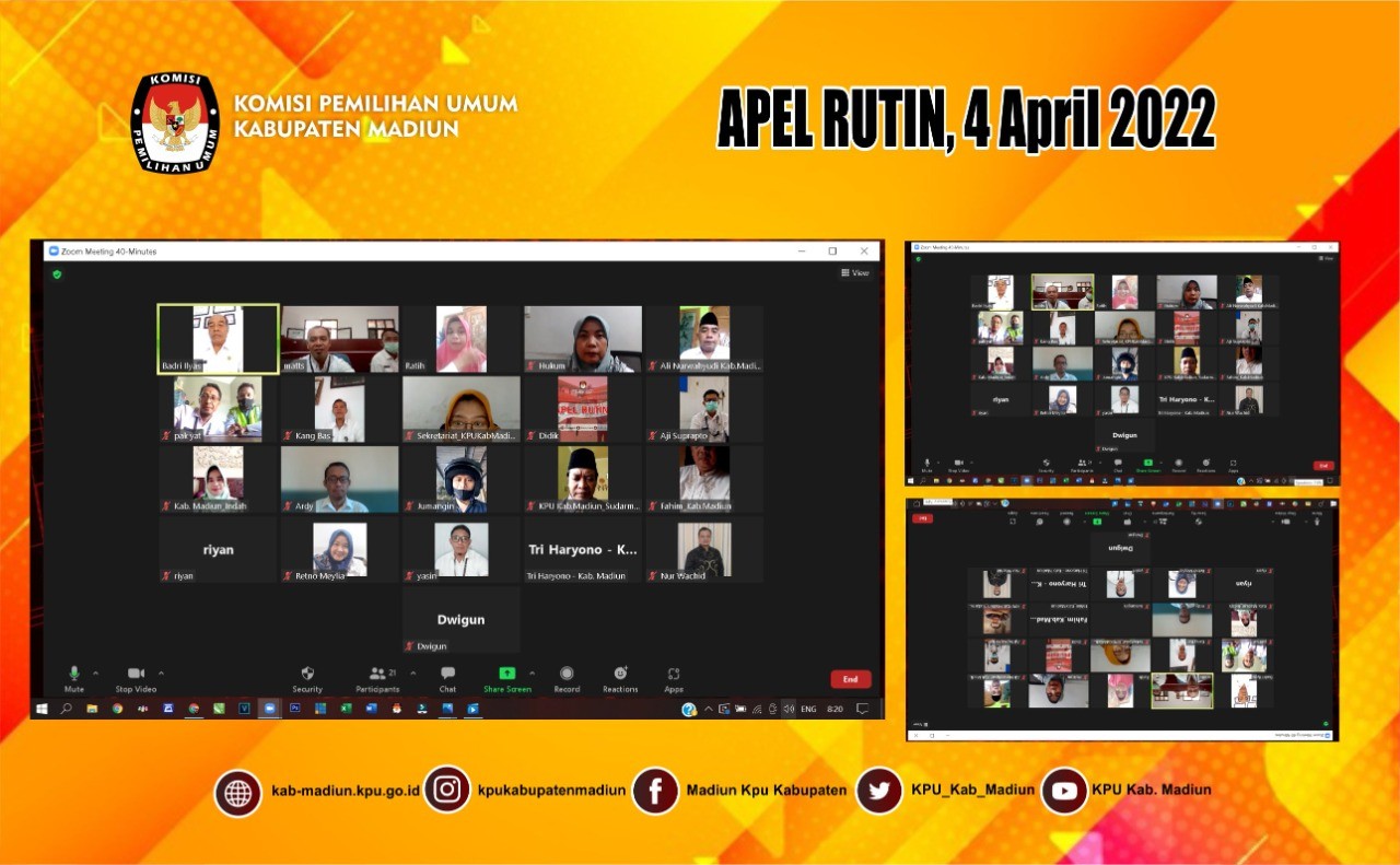 Madiun, http://kab-madiun.kpu.go.id Hari ini Komisi Pemilihan Umum Kabupaten Madiun melaksanakan kegiatan Rapat Koordinasi DPB triwulan I tahun 2022 yang dipimpin oleh Ketua KPU Kabupaten Madiun Ali Nur Wahyudi. Dalam Kegiatan Rakor kali ini dihadiri oleh Komisioner, Sekretaris, Kasubbag beserta seluruh Stakeholder terkait. Disampaikan oleh Komisioner Divisi Perencanaan Data dan Informasi Nur Wachid Nasrulloh terkait Rakapitulasi DPB Triwulan I tahun 2022 dengan jumlah total 571.690 Pemilih yang terbagi atas 278.566 Pemilih Laki-laki dan 293.124 Pemilih Perempuan.