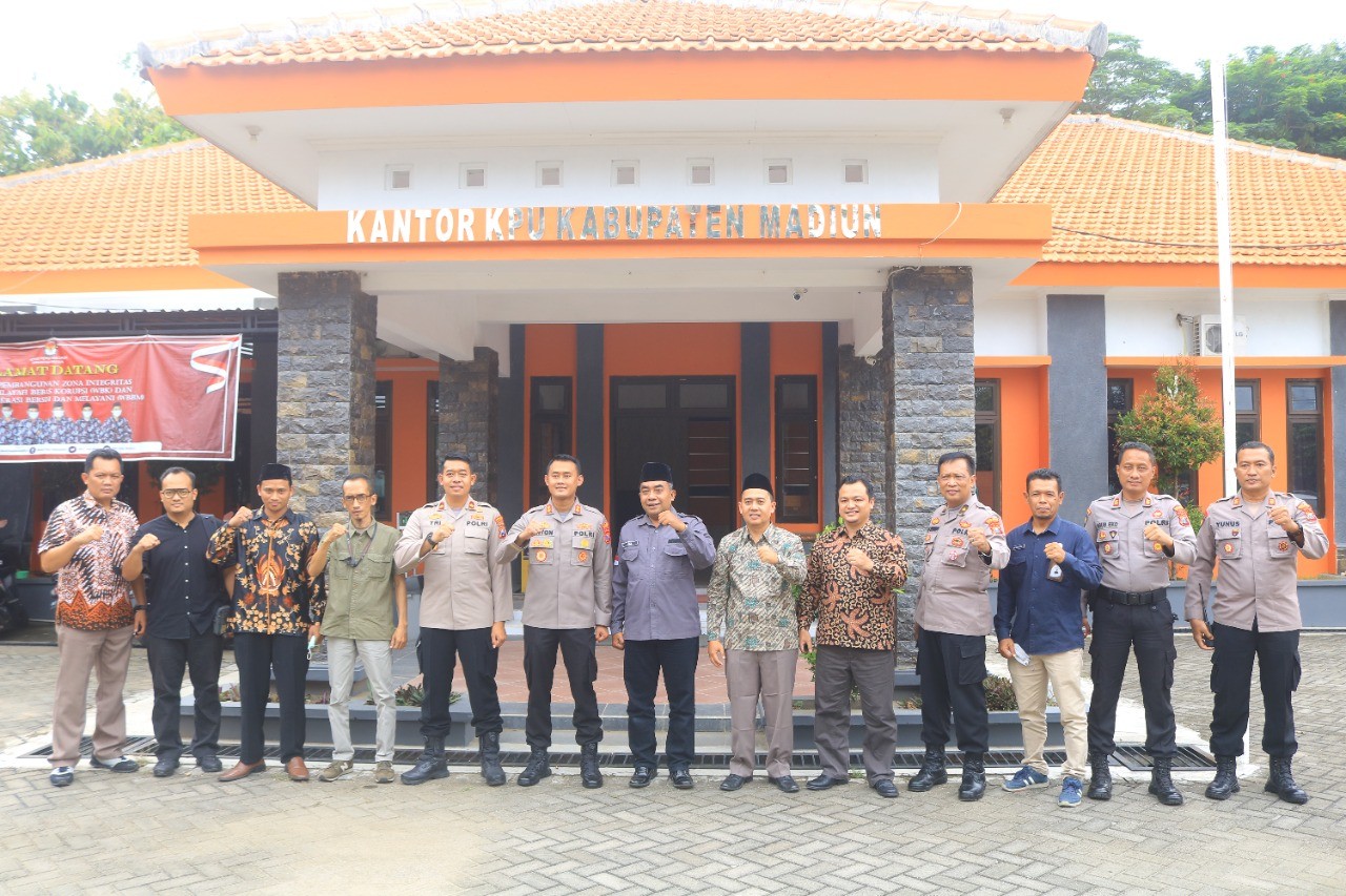 Madiun, http://kab-madiun.kpu.go.id Hari ini pukul 13.30 WIB KPU Kabupaten Madiun mendapat kunjugan dari Kapolres Madiun. Dalam Acara Silaturahmi ini AKBP Anton Prasetyo selaku Kapolres Madiun Baru beserta Pejabat Umum (PJU) Polres Madiun, ditemui langsung oleh Ketua KPU Kabupaten Madiun Ali Nur Wahyudi dalam rangka salam kenal sebagai pemegang wilayah keamanan di Kabupaten Madiun. Kegiatan silaturahmi ini juga dihadiri oleh Seluruh Komisioner lainnya yang didampingi dengan Sekretaris KPU Kabupaten Madiun. Kapolres Madiun beserta PJU Polres Madiun selain memperkenalkan diri masing masing juga menyampaikan kepada KPU Kabupaten Madiun akan siap mendukung dalam segi keamanan demi kelancaran Pemilu Serentak di tahun 2024 mendatang.