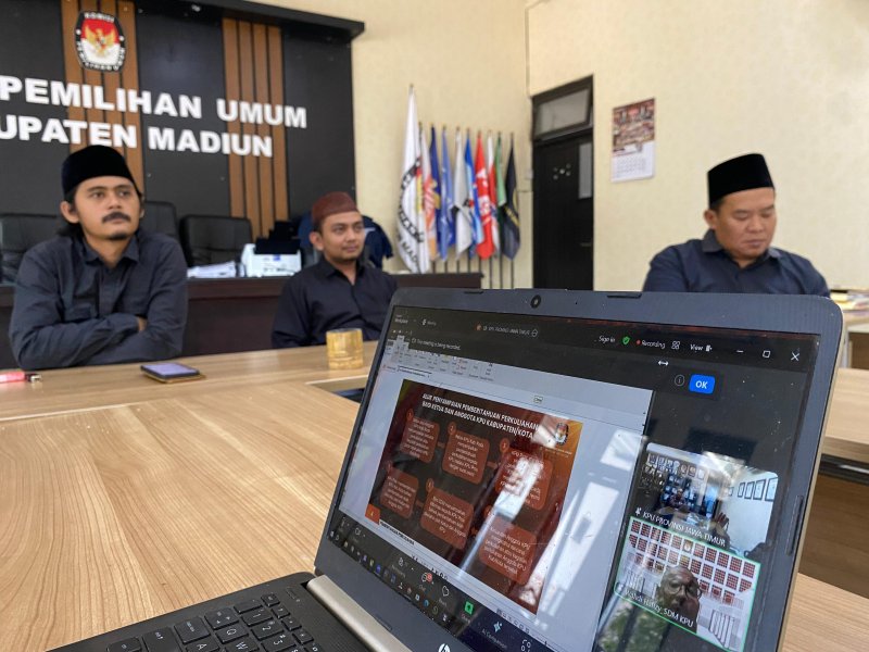 Madiun – Komisiner Komisi Pemilihan Umum (KPU) Kabupaten Madiun mengikuti kegiatan sosialisasi terkait izin perkuliahan dan cuti bagi anggota KPU Provinsi serta KPU Kabupaten/Kota se-Jawa Timur. Kegiatan yang diselenggarakan oleh KPU Provinsi Jawa Timur ini dihadiri oleh seluruh KPU Kabupaten dan Kota se-Jawa Timur secara daring melalui Zoom Meeting pada Rabu (24/07/2025) dan dimulai pukul 09.30 WIB. Sosialisasi ini bertujuan untuk memberikan pemahaman mendalam terkait regulasi sebagaimana tercantum dalam Peraturan Komisi Pemilihan Umum (PKPU) Nomor 8 Tahun 2019 tentang Tata Kerja Komisi Pemilihan Umum, Komisi Pemilihan Umum Provinsi, dan Komisi Pemilihan Umum Kabupaten/Kota, yang telah mengalami beberapa perubahan, terakhir melalui PKPU Nomor 12 Tahun 2023 tentang Perubahan Kelima Peraturan Komisi Pemilihan Umum (PKPU) Nomor 8 Tahun 2019. Hadir dalam kegiatan tersebut, komisioner KPU Kabupaten Madiun, yaitu Ketua sekaligus Divisi Keuangan Umum dan Logistik, Nur Anwar, kemudian Divisi Perencanaan, Data dan Informasi, Irsyad Kholis Fatchurrozaq, serta Divisi Teknis Penyelenggaraan, Lutfi Al’as’ari, yang secara aktif mengikuti jalannya sosialisasi. Pada kegiatan ini menghadirkan KPU RI sebagai narasumber sosialisasi tersebut. Materi yang disampaikan mencakup ketentuan teknis serta tata cara pengajuan izin perkuliahan dan cuti, termasuk persyaratan administrasi dan ketentuan waktu, agar pelaksanaan tugas kelembagaan tetap berjalan optimal tanpa mengabaikan hak individu anggota. Kegiatan ini menjadi bagian dari upaya penguatan kelembagaan KPU di seluruh tingkatan, sekaligus memastikan bahwa seluruh anggota memahami batasan dan ruang lingkup kebijakan izin yang berlaku. Dengan adanya sosialisasi ini, diharapkan seluruh jajaran KPU di wilayah Jawa Timur dapat lebih tertib dan akuntabel dalam menerapkan kebijakan internal yang berkaitan dengan pengembangan individu anggota, tanpa mengganggu pelaksanaan tugas kelembagaan. Penulis: Haryanti Editor: Endy S.